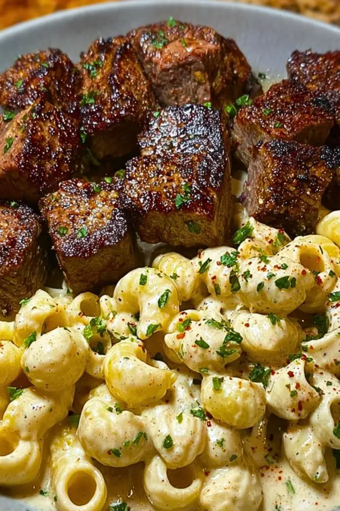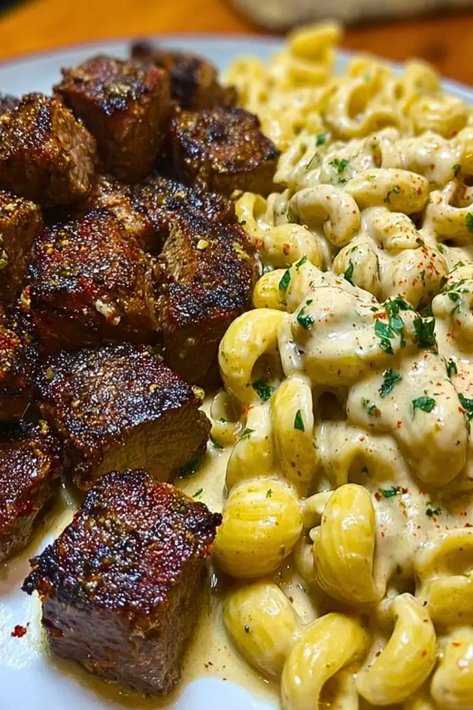 Garlic Butter Steak Bites & Creamy Chipotle White Cheddar Shells isn’t just a meal — it’s an experience. Juicy, seared steak swimming in garlic butter, paired with smoky, creamy pasta shells is everything comfort food should be. It’s fast enough for a weeknight dinner but bold enough to impress. With a bit of prep and the right balance of spice, this dish is destined to become a repeat favorite in your kitchen.