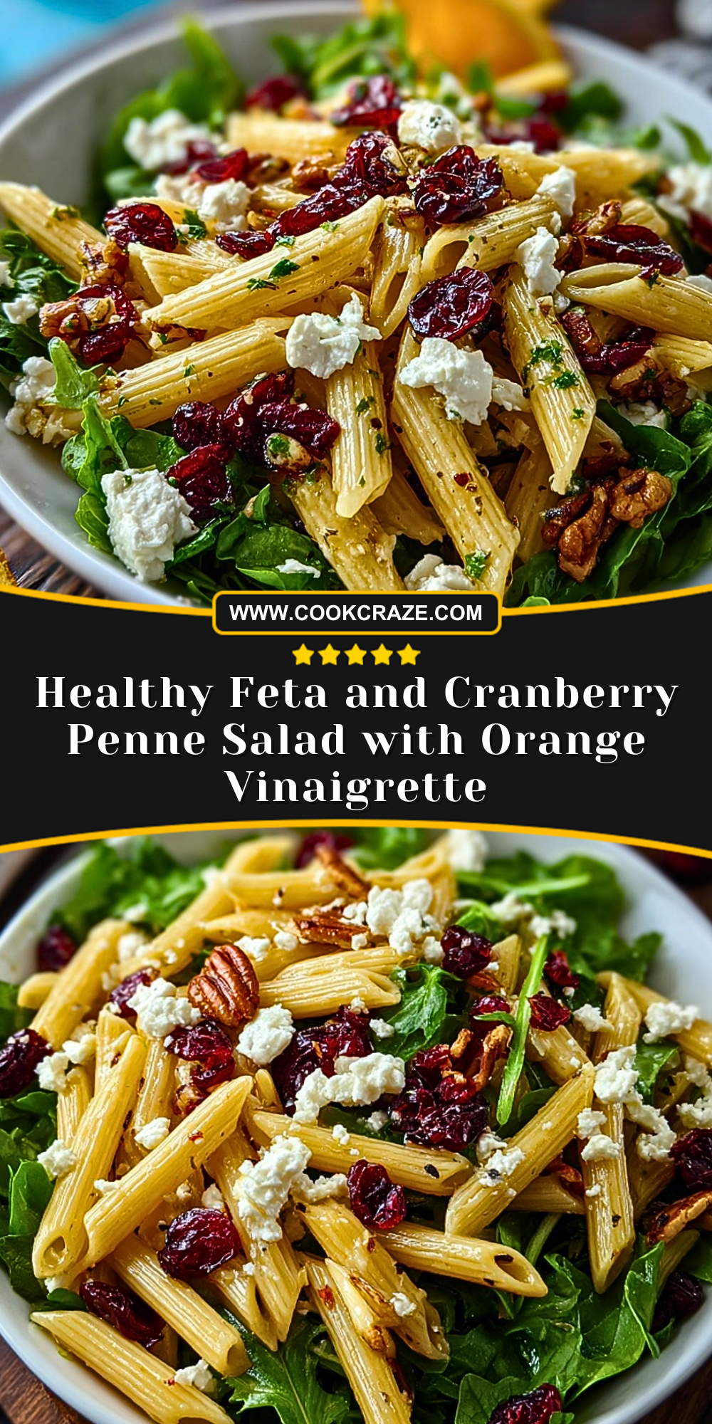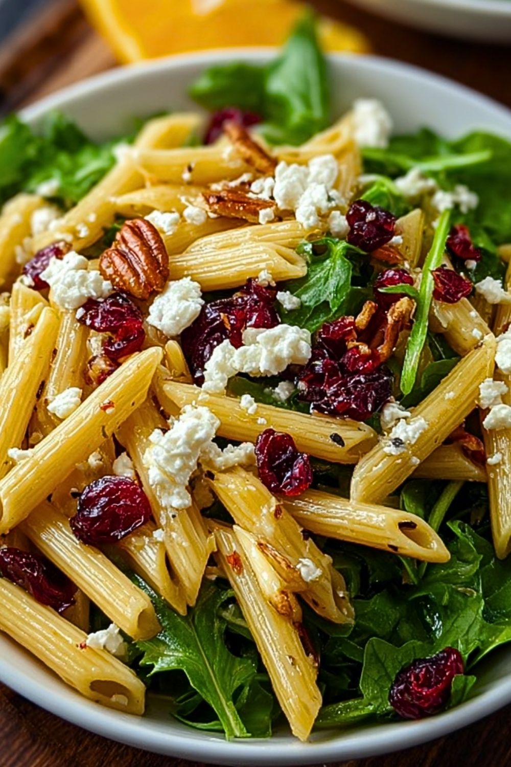 Healthy Feta and Cranberry Penne Salad with Orange Vinaigrette