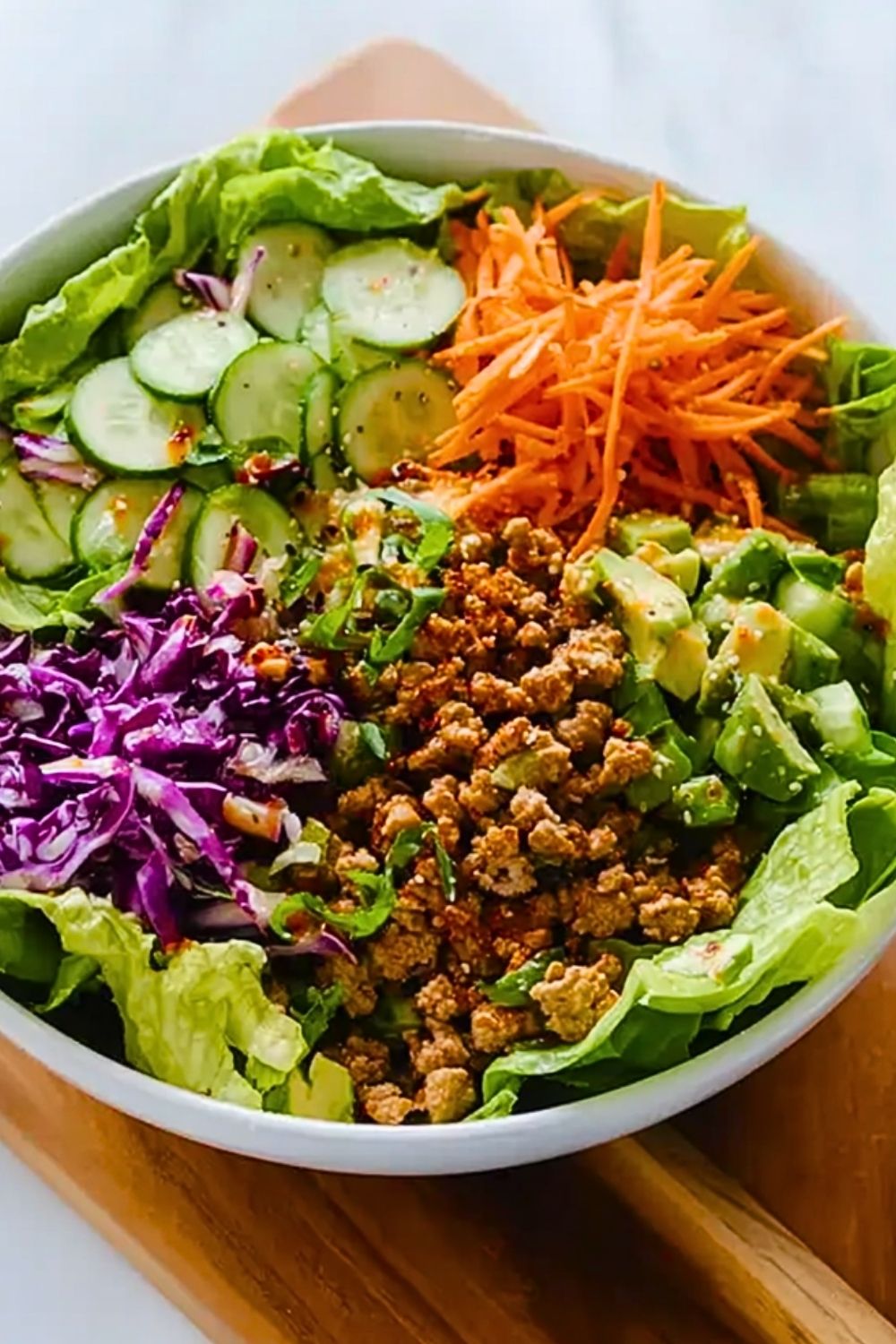 With lean ground turkey as the star protein and a rainbow of shredded carrots, red cabbage, cucumbers, and crisp romaine, each bowl is both visually stunning and incredibly nutritious. Drizzle over a rich peanut or sesame-based sauce, and you’ve got a meal that’s protein-packed, low in carbs, and high in flavor. Whether you’re after a low-effort lunch or healthy dinner idea, these bowls are a go-to for clean eating without sacrificing taste.