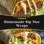 Craving a fast-food favorite without leaving your kitchen? These **Homemade Big Mac Wraps** are the perfect quick dinner idea that packs in all the iconic flavors of the classic burger—ground beef, cheddar cheese, shredded lettuce, pickles, and creamy Big Mac sauce—wrapped in a warm, griddled tortilla. Perfect for easy dinner recipes, family meals, or even a savory snack, this easy recipe is everything you love about a Big Mac, with less mess and more convenience. It’s one of those food ideas you’ll want to make again and again!