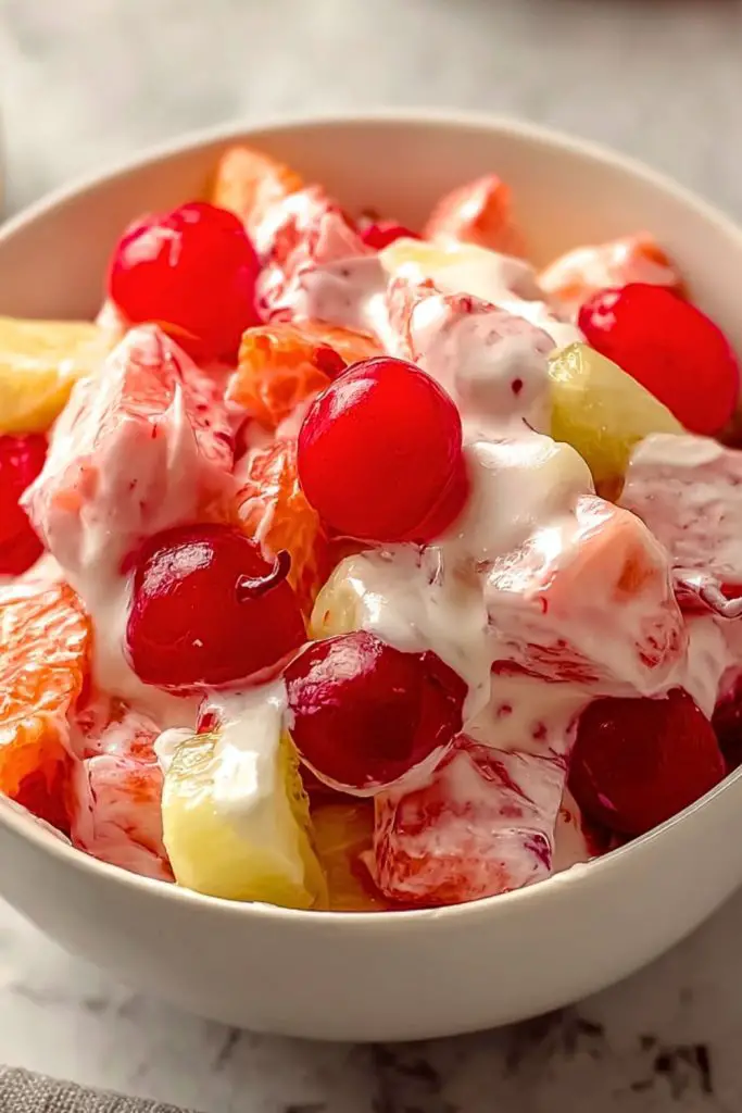 What I love most is how customizable it is. Whether I’m working with a few staples from the pantry or a medley of fresh fruits from the farmer’s market, this salad always turns out beautifully. And that dreamy pink hue from the cherries and cream mix? It’s a total showstopper on the table.