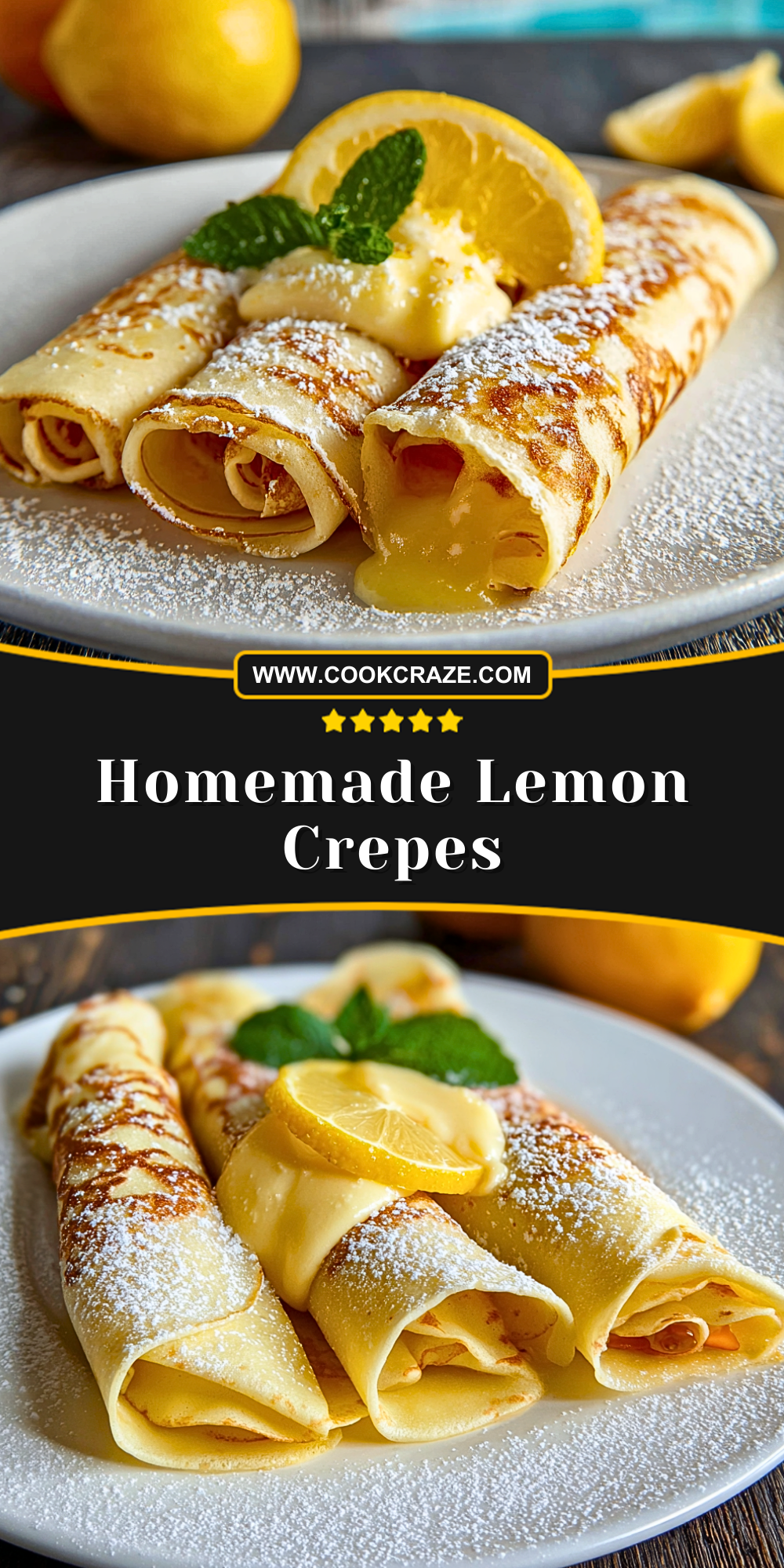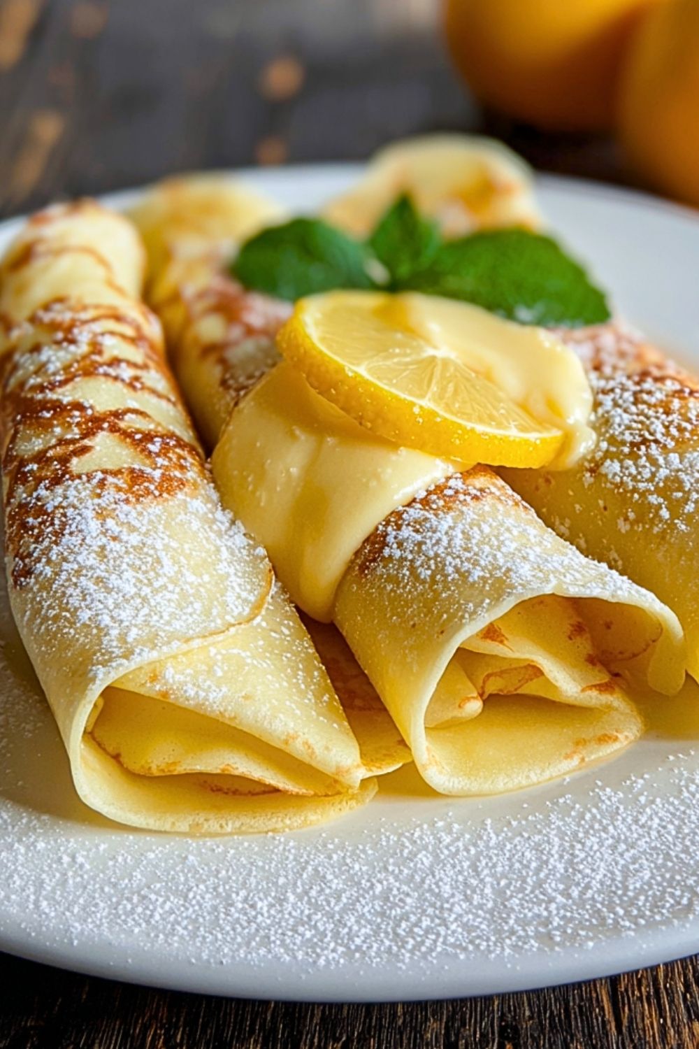 Homemade Lemon Crepes rely heavily on balance and technique. The batter should always be thinner than traditional pancake batter; if it thickens after resting, add 1–2 tablespoons of milk to loosen it. Fresh lemon zest is far more aromatic than bottled alternatives and gives the crepes their signature brightness without making them overly sour. For extra depth, you can brown the butter before adding it to the batter, creating a subtle nutty undertone that complements the citrus beautifully. If serving for dessert, consider lightly caramelizing the filled crepes in a pan with a touch of butter and sugar for a delicate crisp exterior.