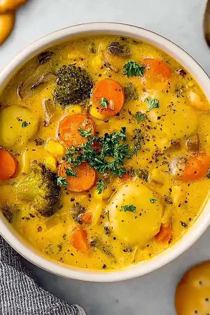 Cozy up with this *Irresistible One Pot Creamy Vegetable Soup* — a quick, healthy dinner idea that’s both comforting and nutritious. This easy recipe combines tender vegetables, a silky broth, and a touch of cream for a satisfying, soul-warming dish. Whether you’re looking for a weeknight meal, lunch prep, or meatless dinner ideas, this creamy vegetable soup is an all-in-one winner. Perfect for anyone in need of an easy dinner or food ideas that don’t compromise on flavor. Plus, it stores beautifully for leftovers or freezing!