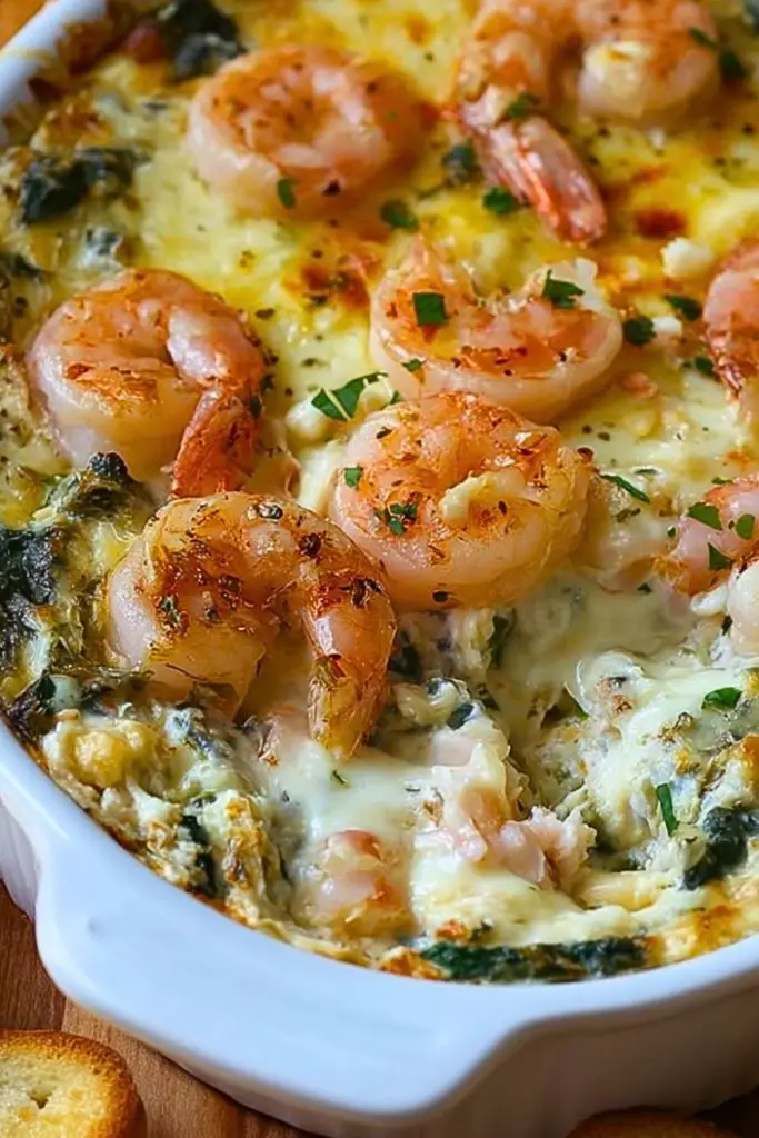 The blend of tender shrimp, sweet crab, and earthy spinach baked into a rich, cheesy base creates a flavor profile that feels like a celebration. The textures are perfectly balanced too — creamy, juicy, and just enough crunch from the golden topping or toasts on the side. It’s one of those crowd-pleasing dishes that people keep asking for. I’ll often double the recipe just to make sure there’s enough to go around!