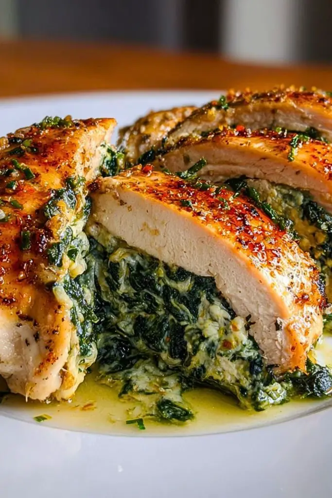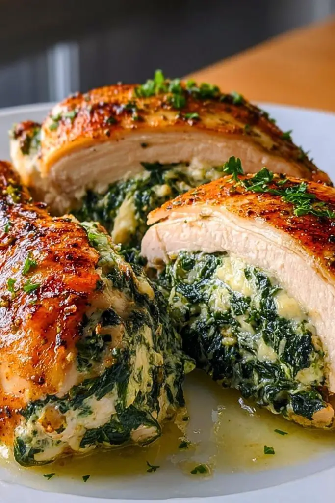 Golden on the outside, juicy on the inside, and bursting with creamy, garlicky spinach — this Spinach Stuffed Chicken is the kind of dinner that makes you pause after the first bite. It’s rich yet balanced, indulgent yet surprisingly simple to prepare. With a crisp sear and a luscious center, it delivers both texture and flavor in every mouthful.