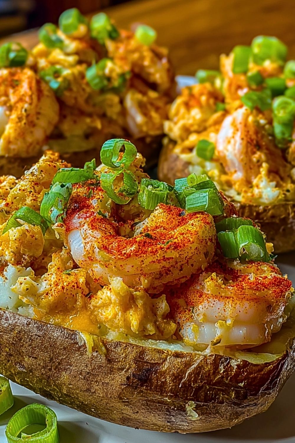 Start by selecting large russet potatoes—they hold their shape best and have a fluffy interior perfect for stuffing. Bake them until fork-tender, but don’t overcook or they may collapse when scooped. When cooking shrimp, avoid overcooking to keep them tender and juicy. Let the seafood mixture cool slightly before stuffing to avoid melting the cheese too early. Finish with a sprinkle of smoked paprika and fresh green onions to give the dish a vibrant final touch. Taste your filling before stuffing—seasoning is key in a dish like this.