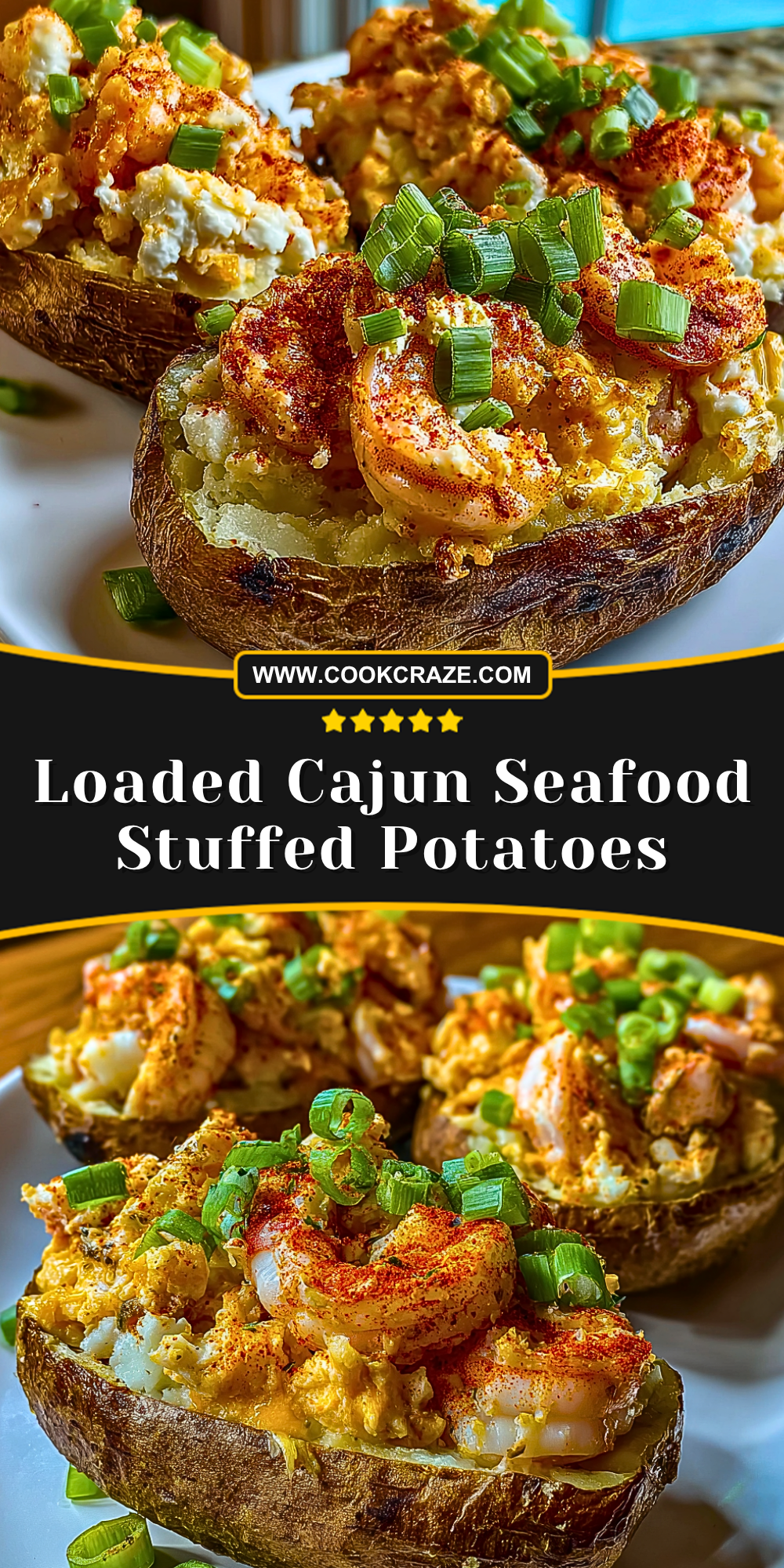 Keywords: seafood stuffed potatoes, Cajun dinner ideas, easy seafood recipe, loaded baked potato