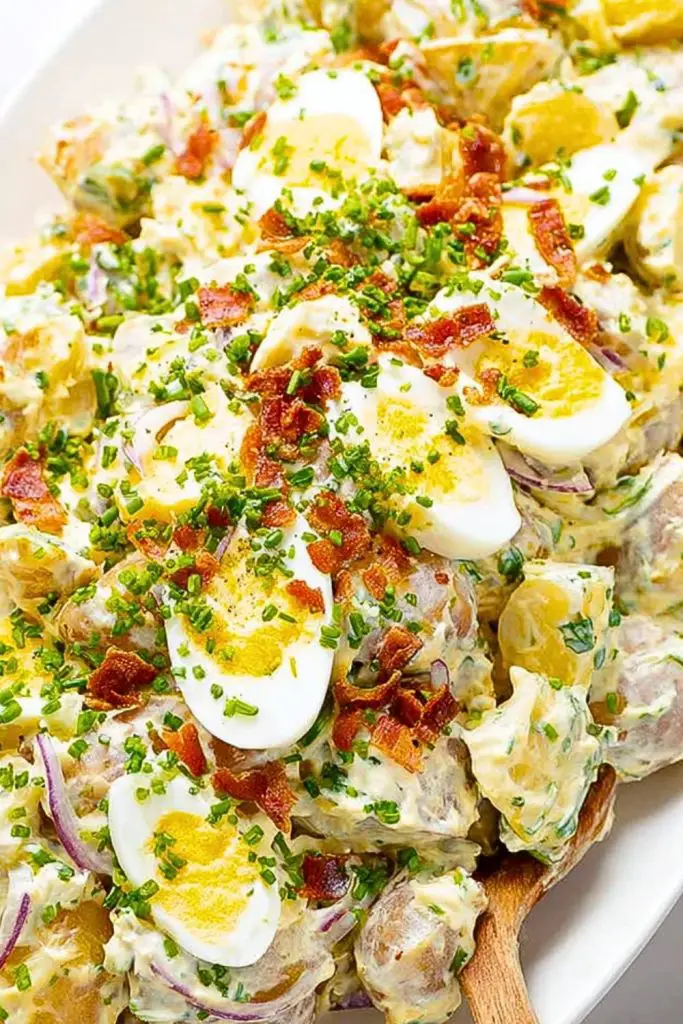 Loaded Potato Salad is the ultimate upgrade to your classic potato salad—packed with crispy bacon, creamy mayo, tangy sour cream, sharp red onions, and fresh herbs. Perfect for BBQs, potlucks, or weekday lunches, this dish is hearty, flavorful, and easy to make. Whether you’re looking for a quick side for dinner ideas, a satisfying lunch, or new food ideas, this easy recipe hits all the marks. A must-have for fans of savory, creamy, and herbaceous dishes, and a great addition to your list of healthy snack and breakfast ideas.