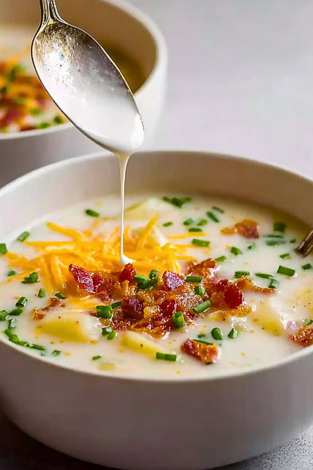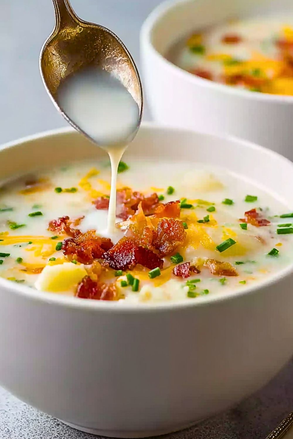 Start by prepping all your ingredients before you begin cooking. Dice your potatoes evenly to ensure they cook uniformly and finish at the same time. Use a mix of Russet and Yukon Gold potatoes if you want both creaminess and structure in the soup. Render the bacon first to create a flavor base using its drippings — this adds depth. Don’t rush the roux; cook the flour until lightly golden to avoid a raw taste. When adding dairy, lower the heat to prevent curdling. Lastly, hold off on adding salt until the end, as bacon and cheese bring in a lot of saltiness.
