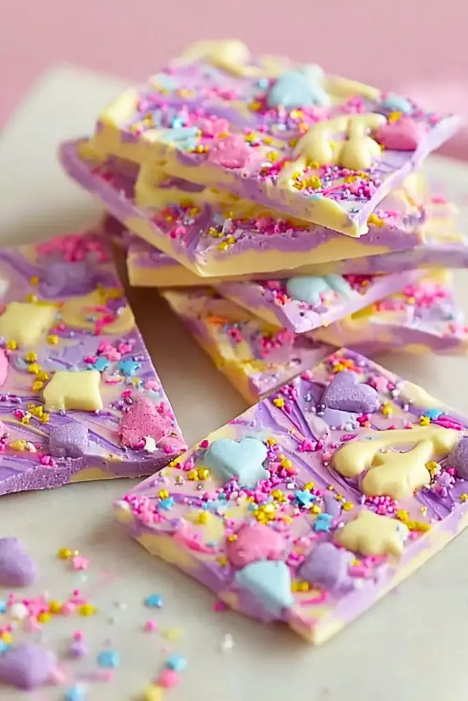 If you want to make it dairy-free, go with a non-dairy yogurt alternative. To color the bark, natural food dyes work great, or you can blend in a bit of beet juice (for pink), spirulina (for green), or blueberry puree (for purple). Instead of traditional sprinkles, try crushed freeze-dried fruit, shredded coconut, or chopped nuts. Sweeten it with maple syrup, agave, or a sugar-free alternative if needed.