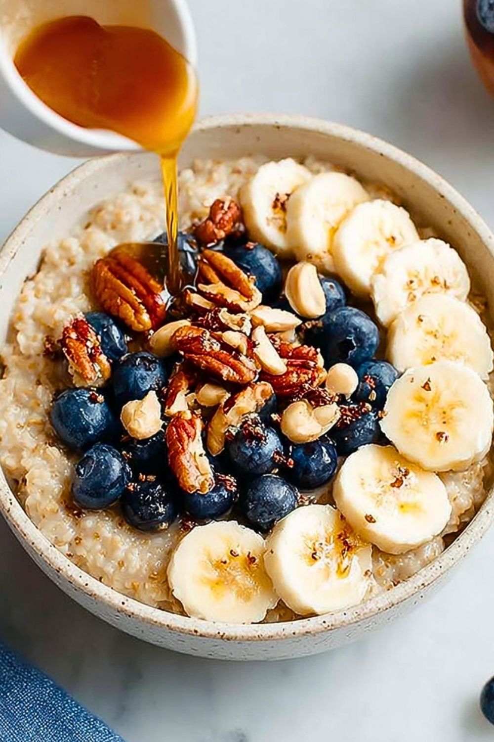 Steel cut oats have become my go-to breakfast for good reason: they’re warm, hearty, and just the right kind of filling to power through the morning without weighing me down. I especially love making them ahead of time, so weekday mornings feel effortless. One big batch on Sunday sets me up for the week, and every spoonful feels like a treat—especially when topped with bananas, blueberries, nuts, and a drizzle of maple syrup.