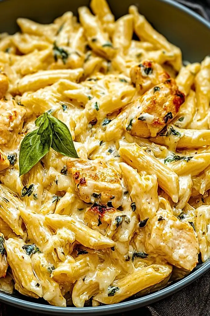 - Comfort food at its finest: Creamy, cheesy, herby goodness with perfectly cooked chicken and pasta.