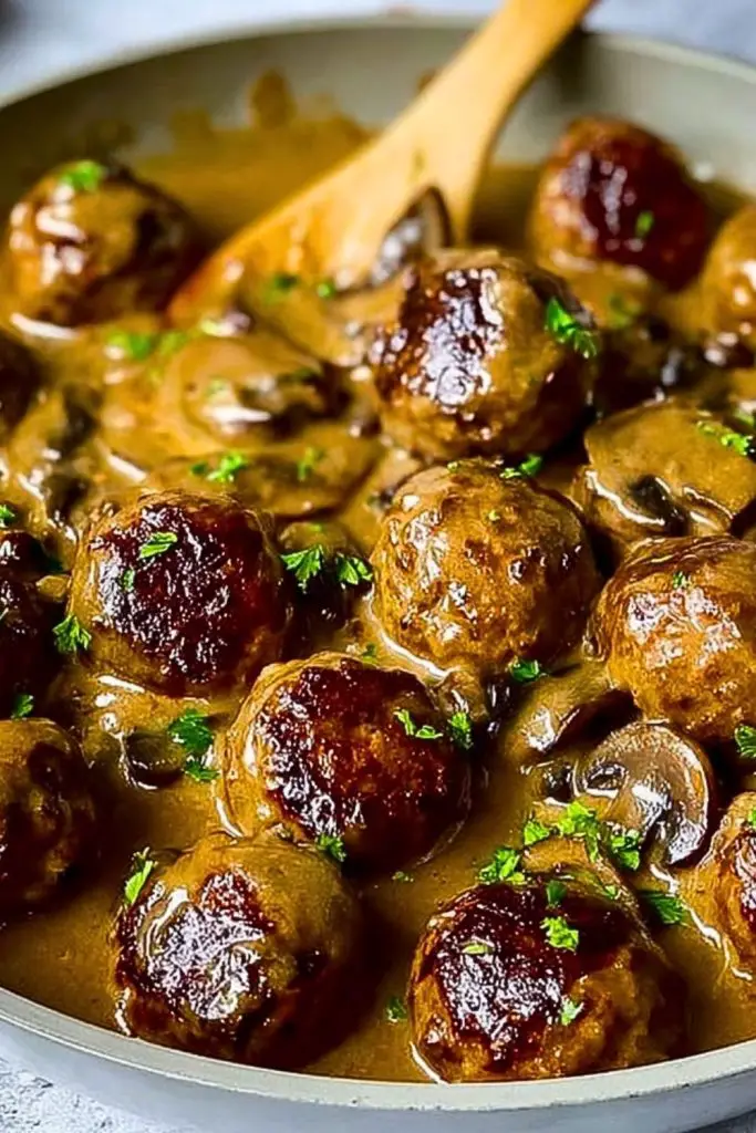 This dish isn’t just about comfort—it’s about creating something truly satisfying with simple ingredients. Whether you’re cooking a cozy dinner for the family or impressing guests with something heartier than the usual fare, these meatballs strike the perfect balance between rustic charm and rich indulgence. Served over mashed potatoes, egg noodles, or even rice, they’ll elevate your dinner routine with very little fuss.