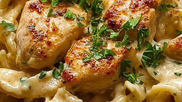 This One-Pan Creamy Parmesan Garlic Mushroom Chicken is the ultimate comfort food for busy weeknights. Golden seared chicken breasts swim in a velvety sauce made with fresh garlic, parmesan cheese, and earthy mushrooms, offering layers of rich flavor in every bite. It’s hearty, creamy, and packed with savory goodness—perfect over pasta, mashed potatoes, or even cauliflower rice if you’re going low-carb.