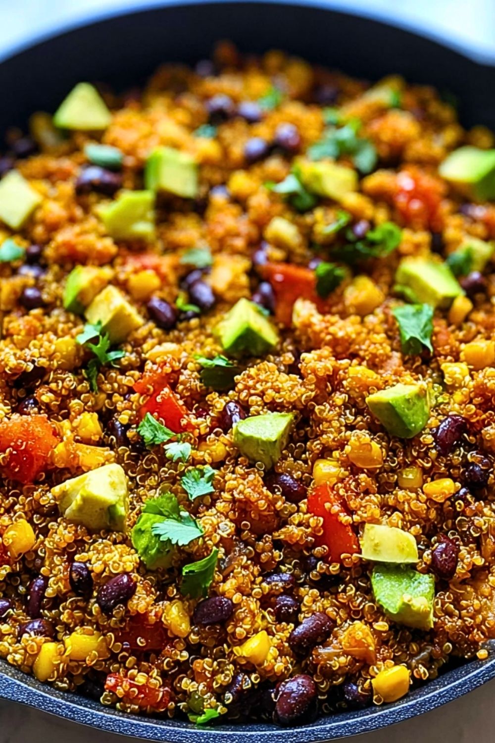 Colorful, zesty, and loaded with plant-powered goodness, One Pan Mexican Quinoa is your new go-to for a quick yet nourishing dinner. This vibrant dish is a perfect harmony of textures and flavors: fluffy quinoa simmered with juicy tomatoes, hearty black beans, crisp bell peppers, tender corn, and the creamy richness of avocado—all tied together with a kick of classic Mexican spices. It’s hearty enough to satisfy, light enough to energize, and so full of flavor, you won’t believe it all came together in one skillet.