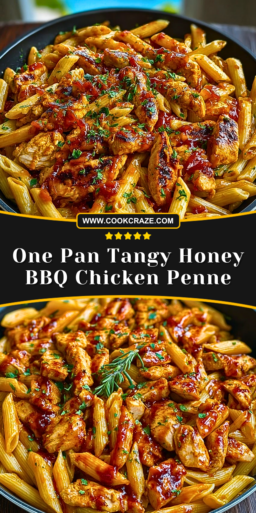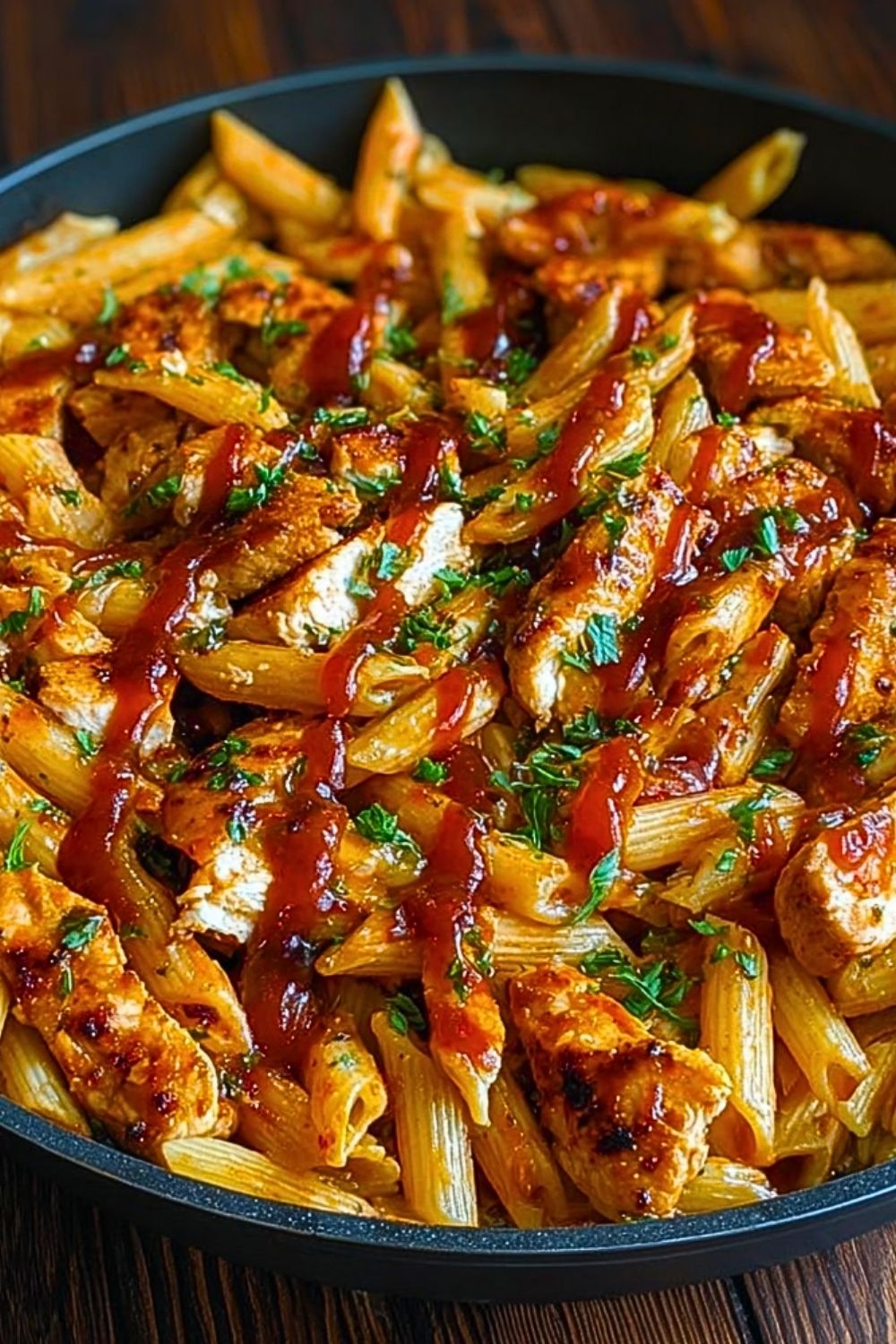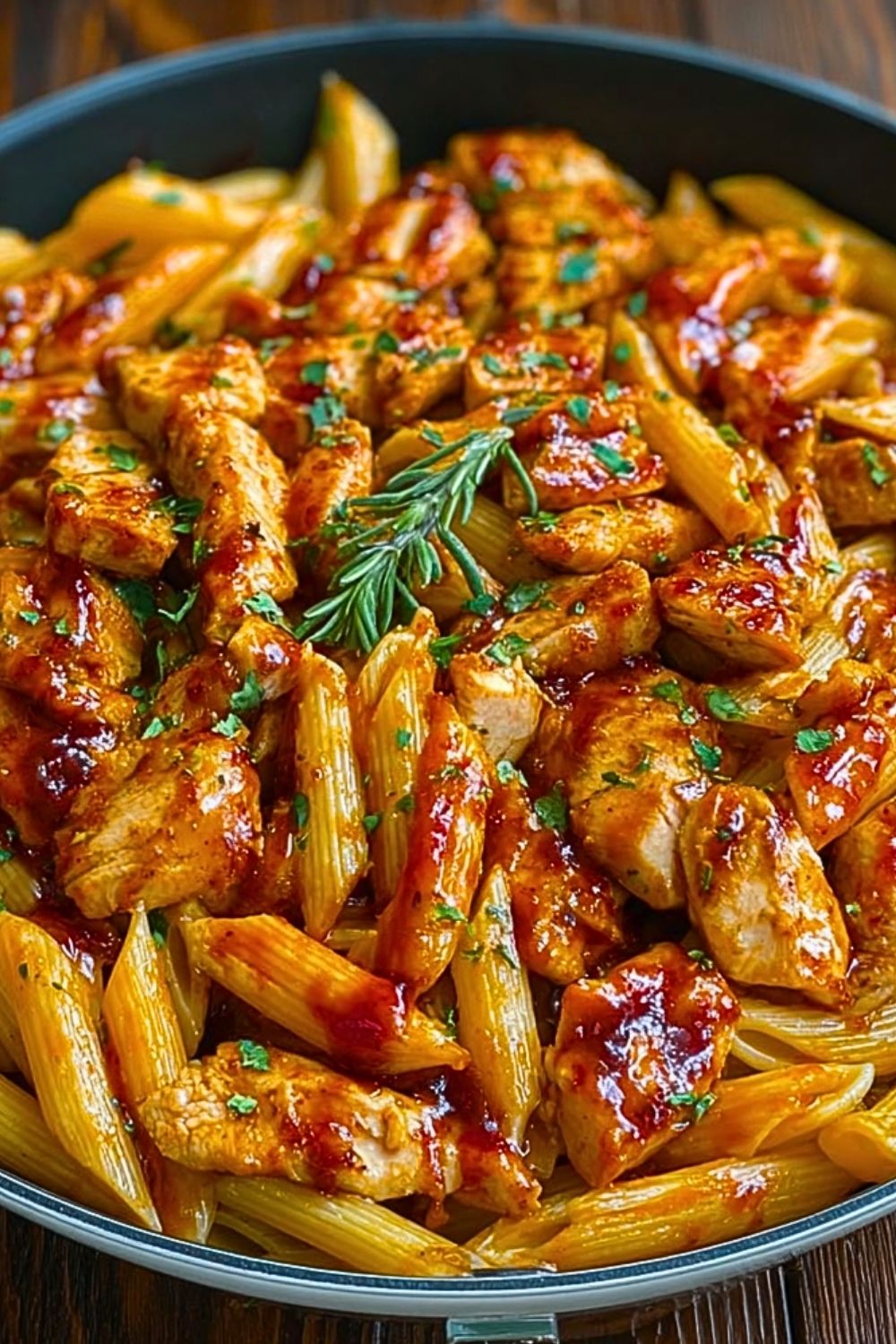 Keywords: honey bbq chicken penne, one pan pasta, easy dinner idea, weeknight meal, skillet pasta, comfort food