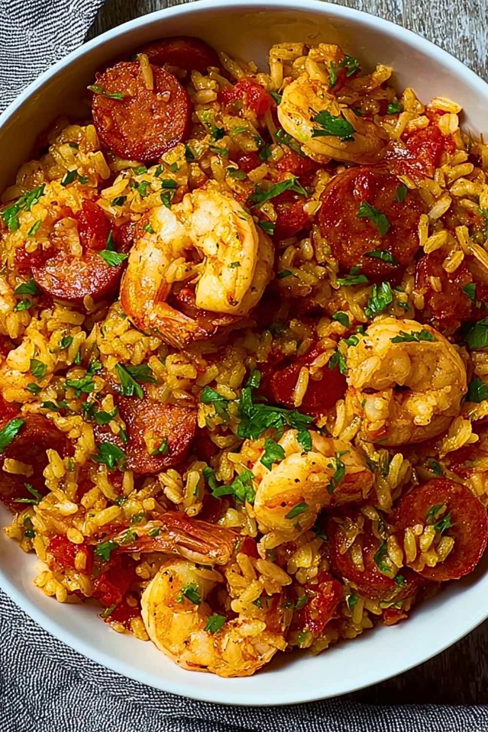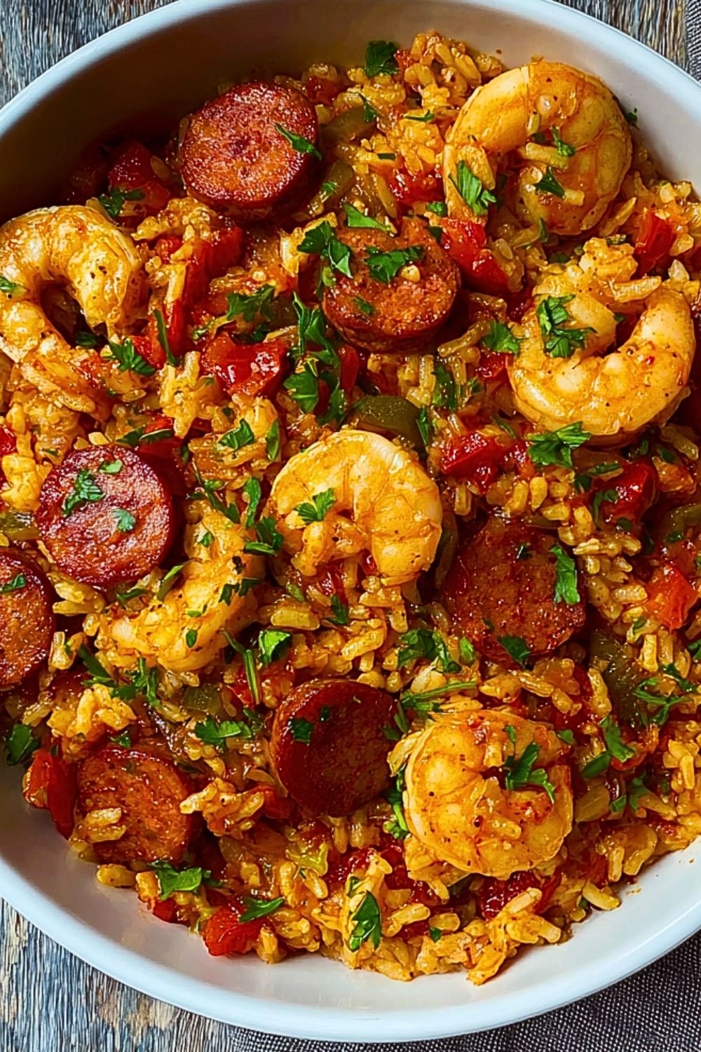 As the rice cooks directly in the seasoned broth with tomatoes and spices, it soaks up every bit of that smoky, spicy goodness. Finishing with shrimp near the end keeps them tender and juicy, adding a fresh seafood note that balances the richness of the sausage.