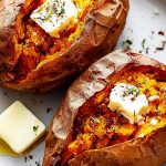 Slice each potato open lengthwise. Fluff the insides gently with a fork and add a pat of butter while still hot so it melts right in. Sprinkle with sea salt and cracked pepper, or get creative with your choice of toppings to match your meal or mood.