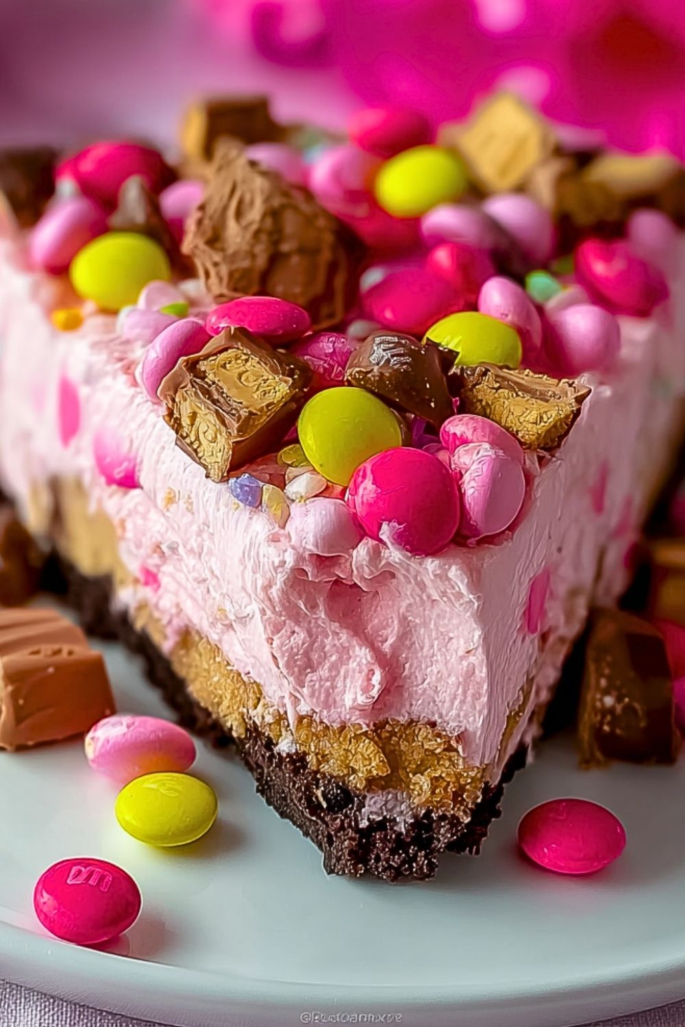 Why You’ll Love This Pink M&M Snickers Cheesecake