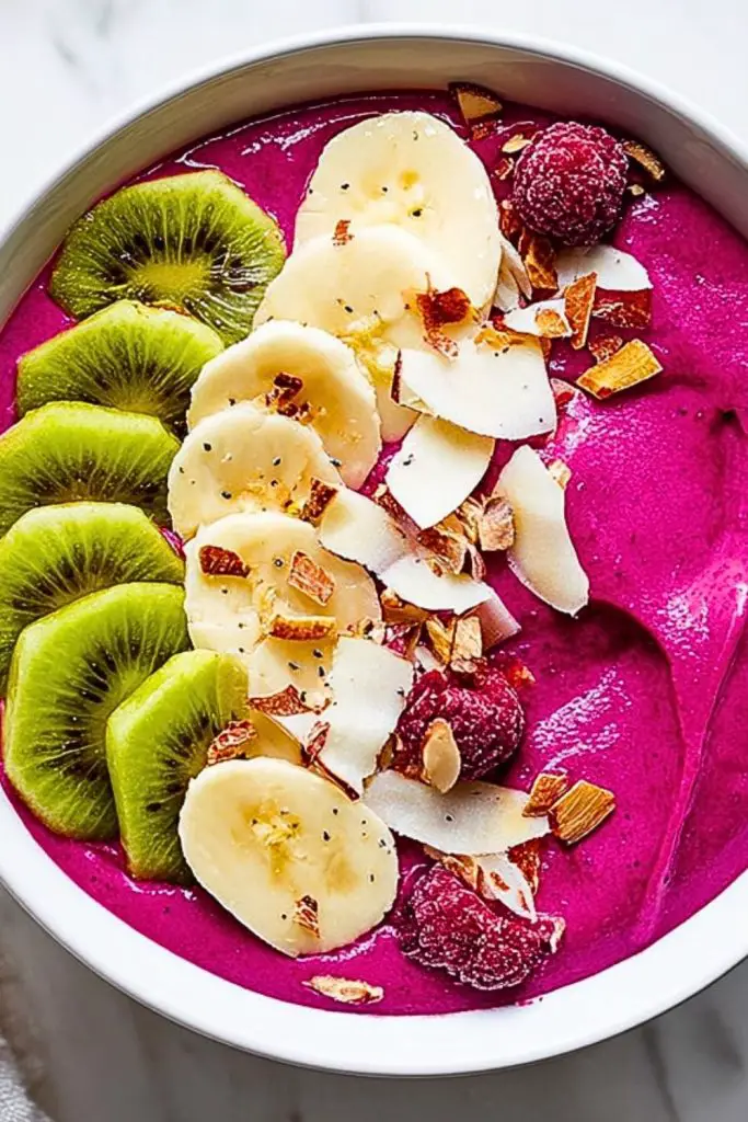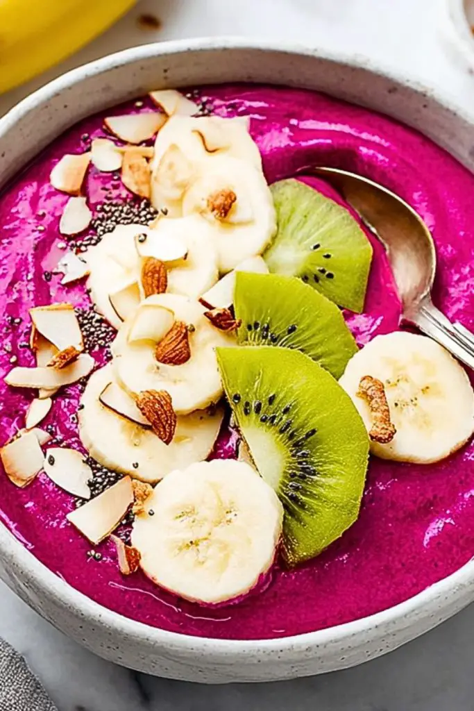 It’s not just pretty—this bowl is packed with antioxidants, fiber, and essential vitamins. It’s naturally dairy-free, gluten-free, and can easily be made vegan. It feels indulgent without any added guilt. Whether you’re looking for a quick breakfast, post-workout snack, or a way to sneak more fruits into your diet, this bowl delivers. Plus, it takes less than 10 minutes to make.