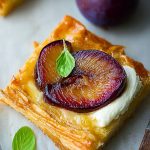 Keywords: plum tart, cheese tart, puff pastry dessert, brunch tart, quick pastry recipe, fruit tart