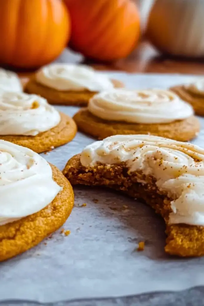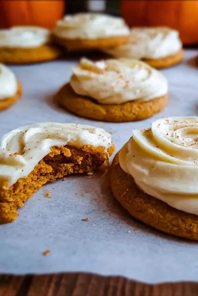 - Keywords: pumpkin cookies, fall dessert, cream cheese frosting, easy cookies, pumpkin dessert