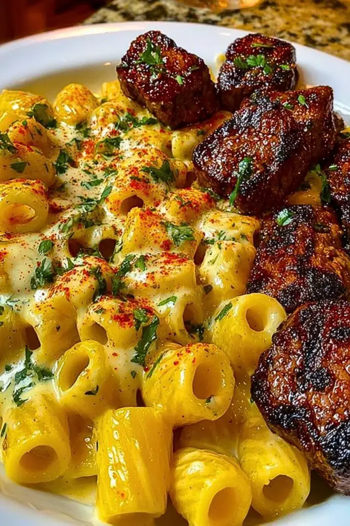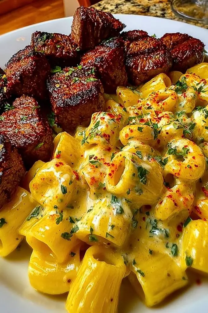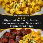 Rigatoni in Garlic Butter Parmesan Cream Sauce with Cajun Steak Tips is the kind of meal that instantly satisfies. It’s rich, creamy, and packed with bold flavor from the seared Cajun steak tips. Whether you’re cooking to impress or just treating yourself to a comfort-filled dinner, this dish delivers. With simple ingredients and quick steps, it’s a recipe that brings steakhouse vibes straight to your kitchen—no reservations needed.