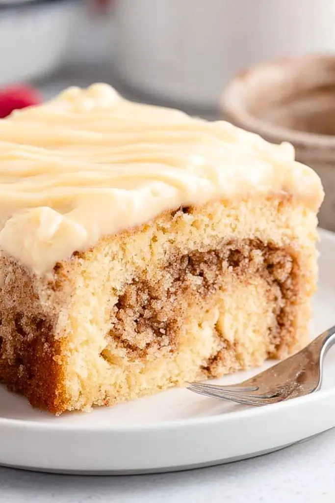 Cream cheese frosting is hands-down the best match for this cake. It’s tangy, rich, and complements the sweetness of the cinnamon swirl beautifully. If you’re short on cream cheese, a vanilla glaze or even whipped buttercream can still work. Just be sure whatever you use has enough richness to balance the spicy sweetness of the filling.