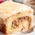 Cream cheese frosting is hands-down the best match for this cake. It’s tangy, rich, and complements the sweetness of the cinnamon swirl beautifully. If you’re short on cream cheese, a vanilla glaze or even whipped buttercream can still work. Just be sure whatever you use has enough richness to balance the spicy sweetness of the filling.