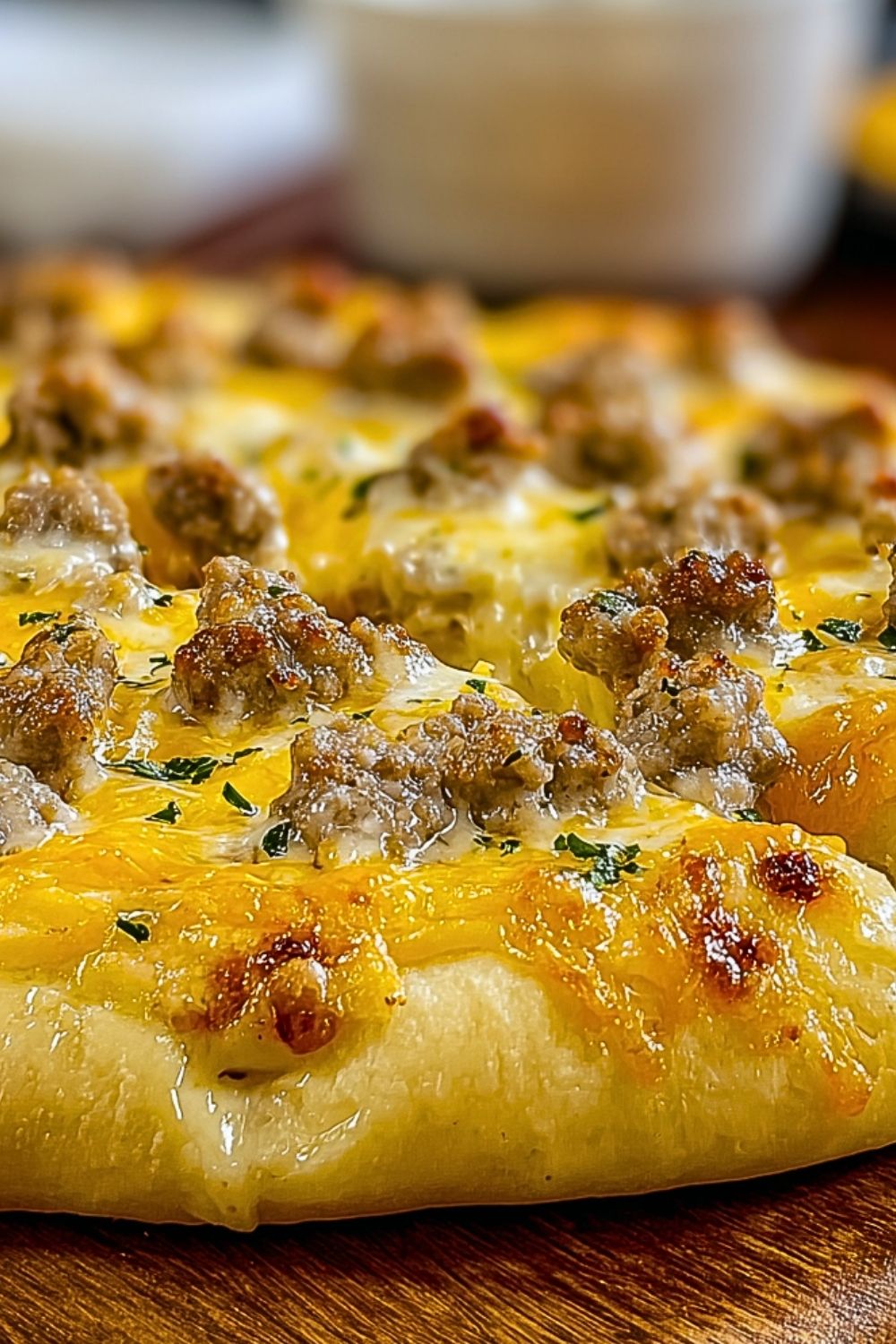 6. Top with shredded cheddar cheese and a few extra sausage crumbles if desired.