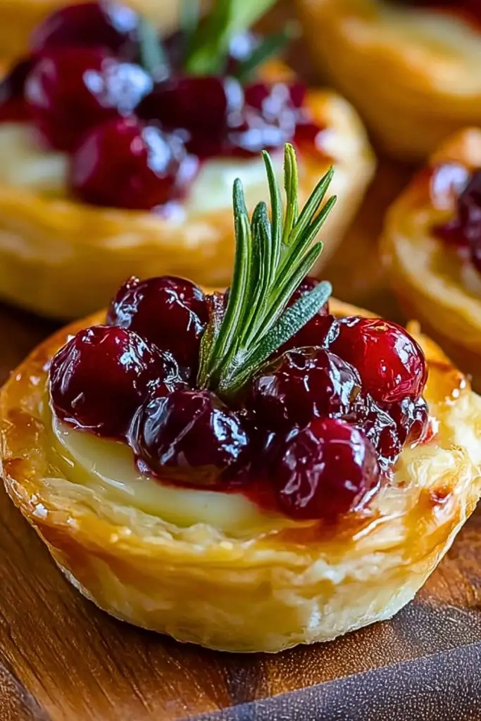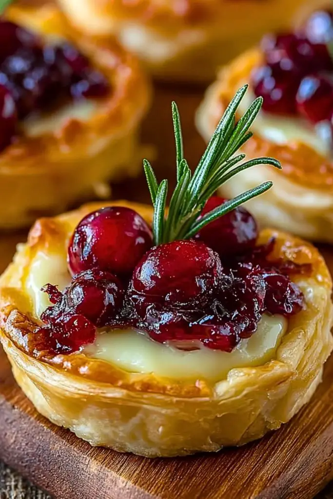 These tartlets are incredibly versatile. You can swap the cranberry sauce with fig jam, raspberry preserves, or even a savory onion chutney for a different flavor profile. Brie can be substituted with camembert or goat cheese if you prefer a tangier bite. For added texture, sprinkle chopped toasted pecans or walnuts over the top before baking. If making these ahead of time, assemble and refrigerate them unbaked, then bake fresh before serving for the best texture.