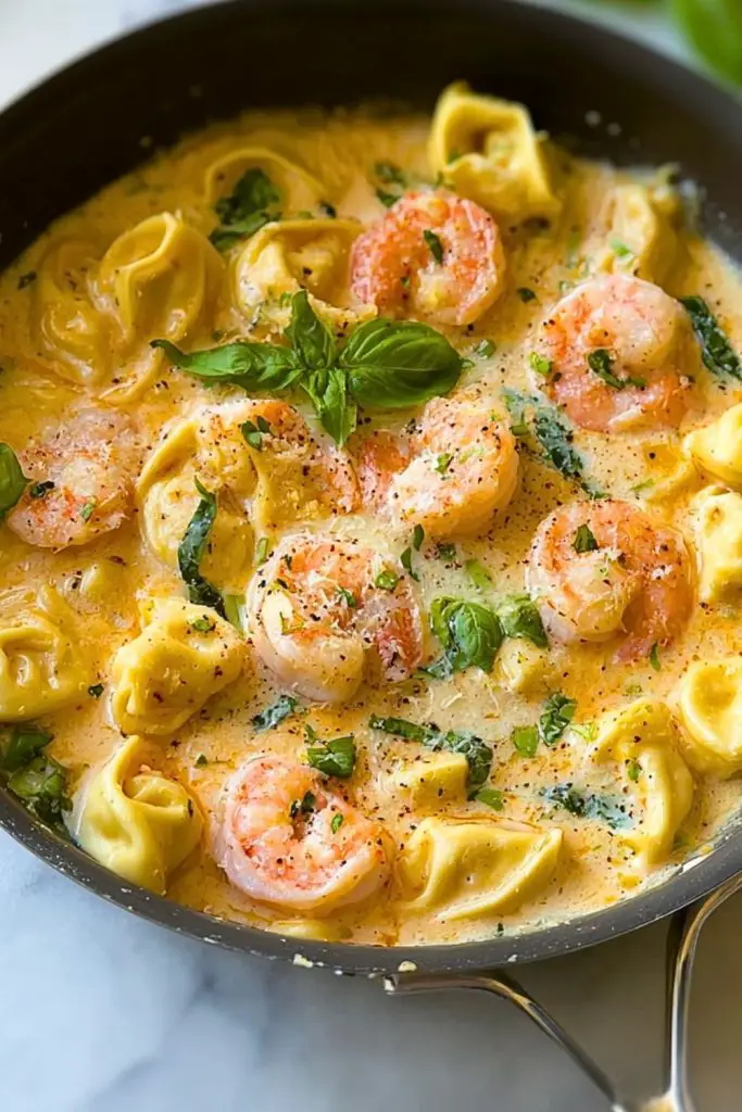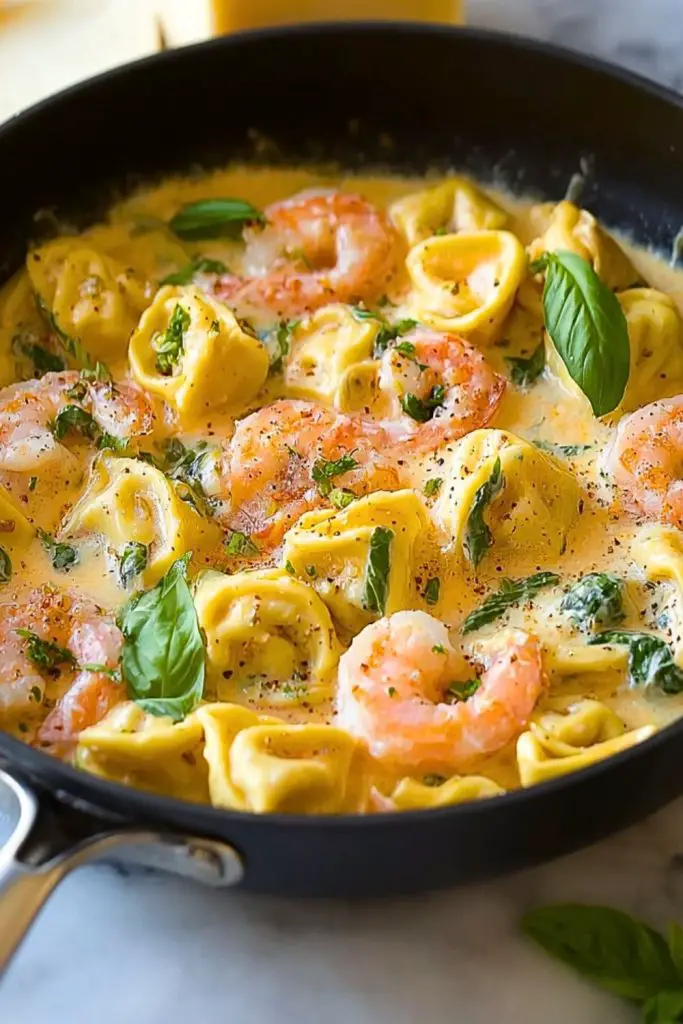 - Juicy shrimp and cheese-filled tortellini create a rich combo.