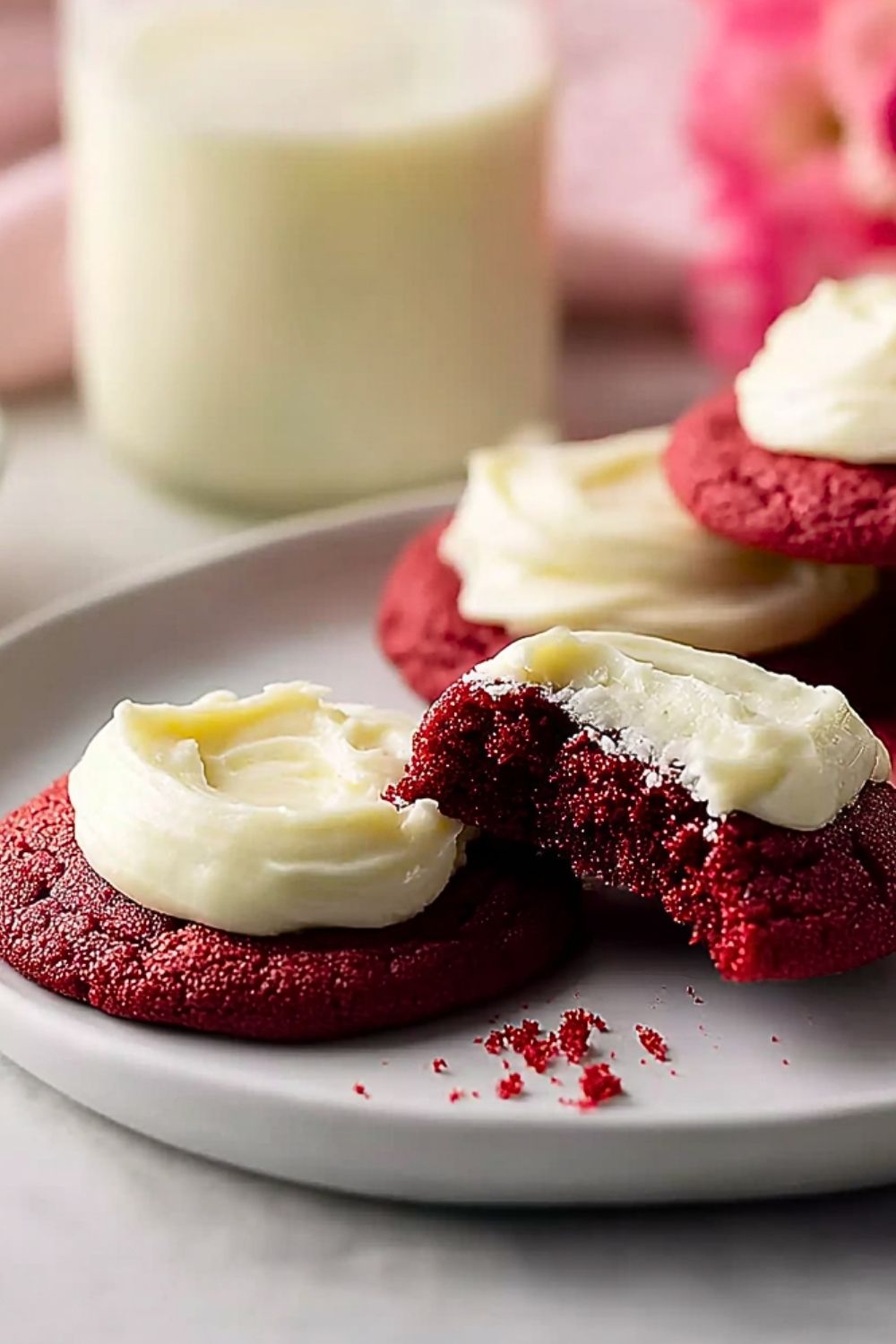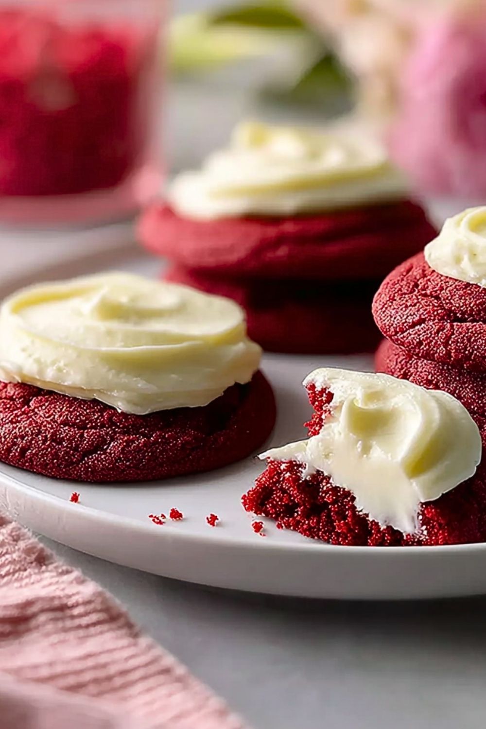 Keywords: red velvet cookies, cream cheese frosting, easy dessert, holiday cookies, Valentine’s Day