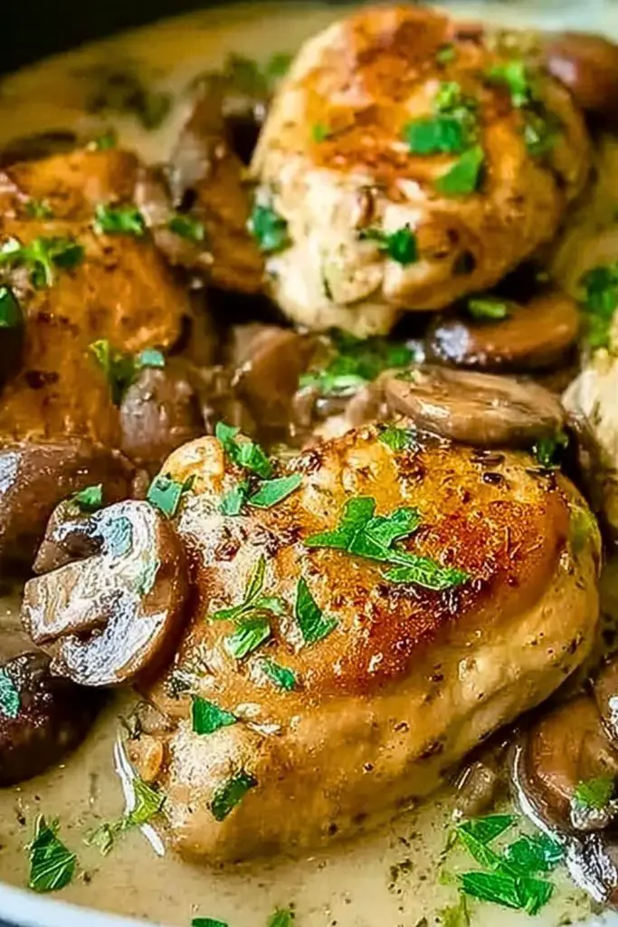 To prepare this recipe, you’ll need a few essential kitchen tools. First, a slow cooker is key, as it gently cooks the chicken to juicy perfection over several hours. A large skillet or sauté pan is used for searing the chicken and sautéing the mushrooms beforehand, which boosts flavor dramatically. Tongs help turn the chicken evenly while searing, and a wooden spoon is perfect for stirring the sauce ingredients without damaging your pan.