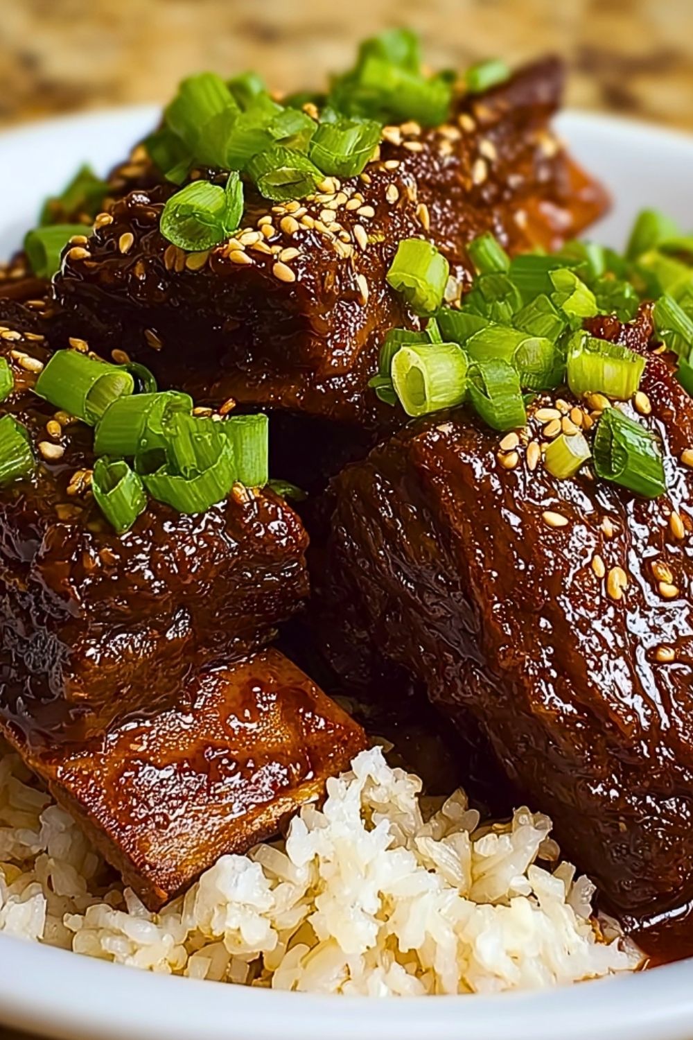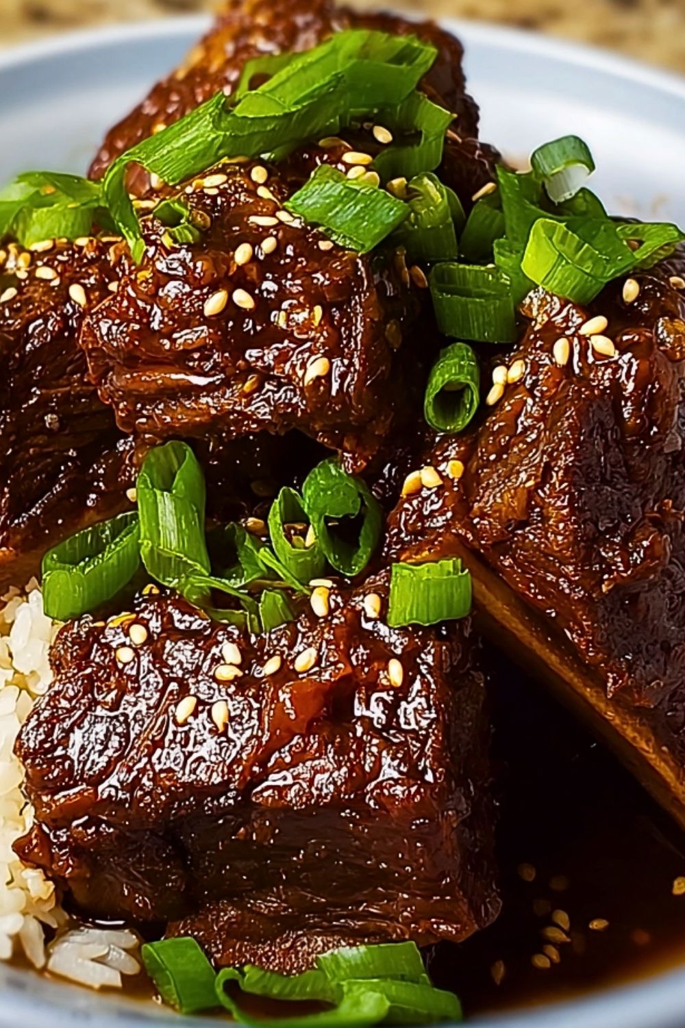 The best part? It takes minimal effort. I love how I can throw everything into the slow cooker in the morning and come back hours later to a meal that tastes like it took all day (because, technically, it did). That sticky glaze clinging to the short ribs, the nutty aroma of toasted sesame, and the pop of fresh green onions—pure comfort in a bowl.