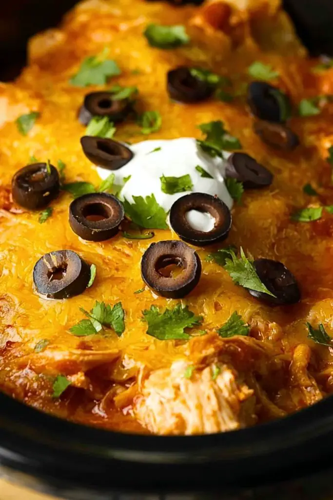 Keywords: chicken enchilada casserole, slow cooker dinner, easy recipe, comfort food