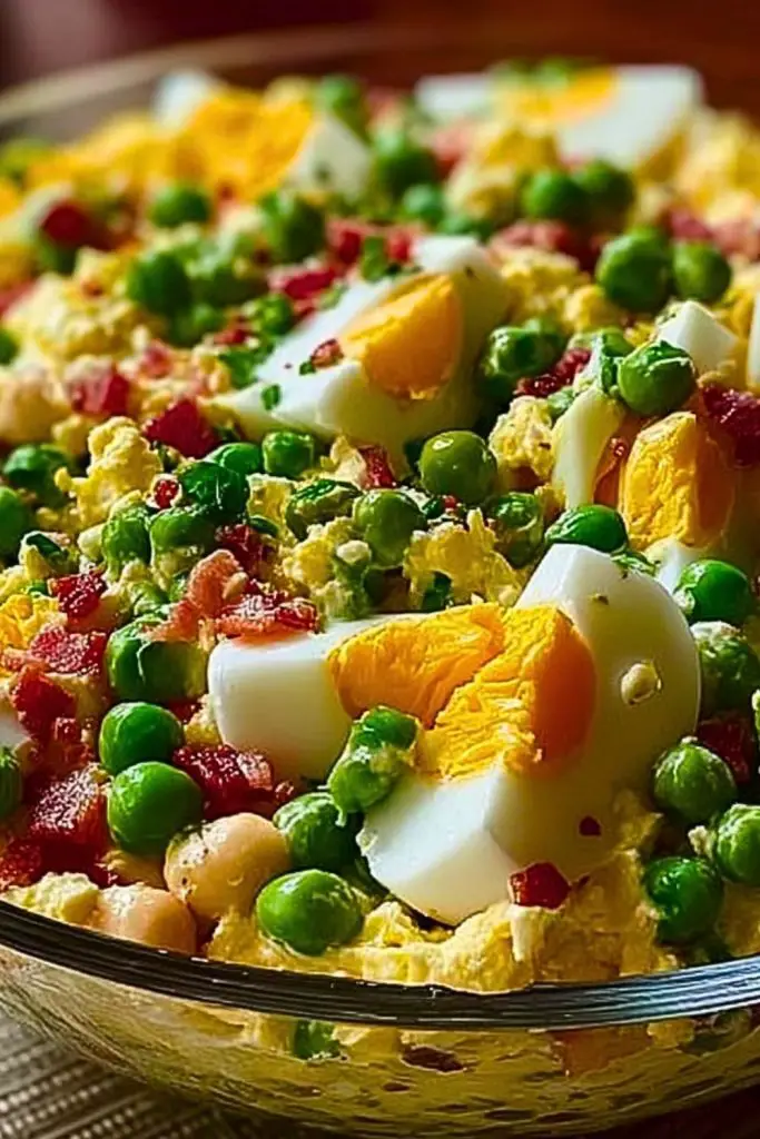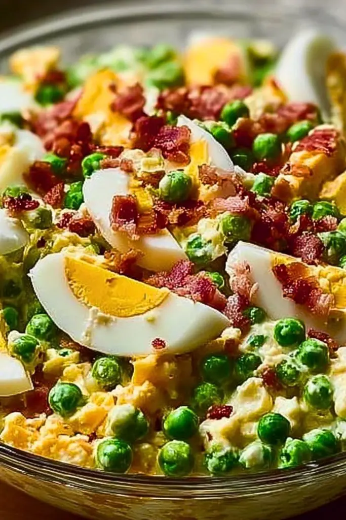Creamy, crunchy, and bursting with sweet and savory flavor, this Southern Pea Salad is the ultimate comfort side dish. Made with tender green peas, crispy bacon, sharp cheddar, and hard-boiled eggs, all tossed in a seasoned mayo dressing, it’s a timeless Southern classic. Whether you’re planning quick lunch ideas, an easy dinner side, or looking for a crowd-pleasing potluck recipe, this one hits every mark. Perfect for BBQs, holiday spreads, or weekday meal prep, this dish delivers nostalgic charm with every bite. Keywords: quick salad, easy dinner, comfort food, Southern food ideas, healthy snack, cold side dish, easy recipe.