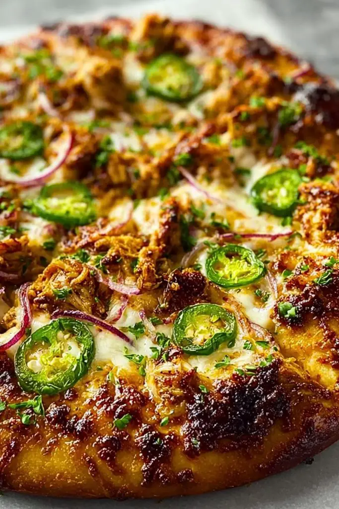 Keywords: spicy pizza, BBQ chicken pizza, jalapeño pizza, easy dinner, pizza recipe, quick meals