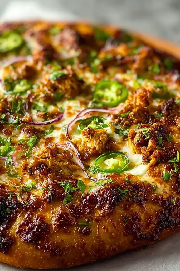 This pizza is incredibly versatile—you can swap BBQ sauce with buffalo sauce for a tangier twist or go with a creamy garlic base if you’re not into spice. The balance of spicy jalapeños with rich cheese and smoky chicken is what makes this pizza stand out. Use fresh jalapeños for a crunchier bite, or stick to pickled ones for a mellow, vinegary heat. Adding a garlic oil base under the cheese boosts the depth of flavor without overpowering it.