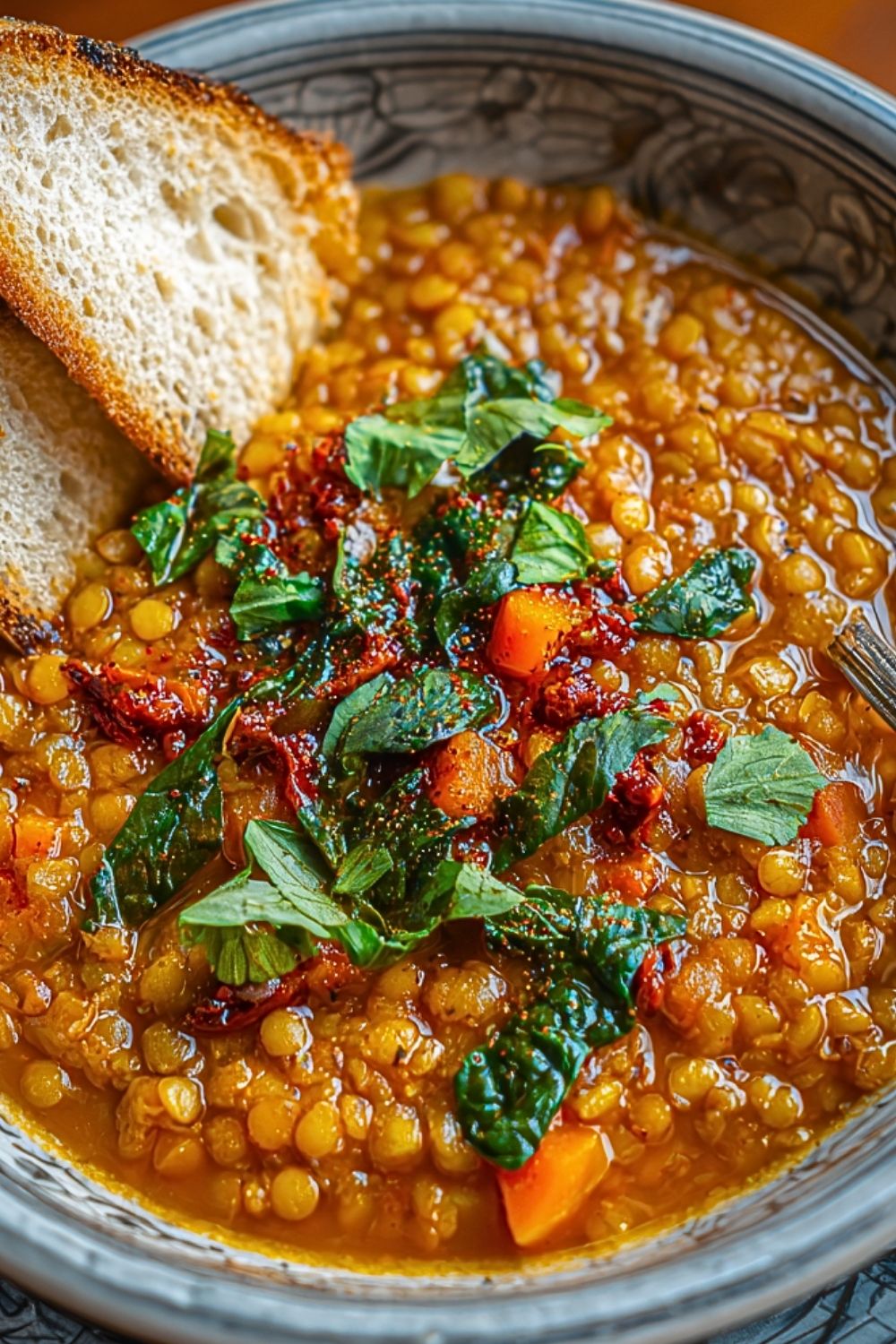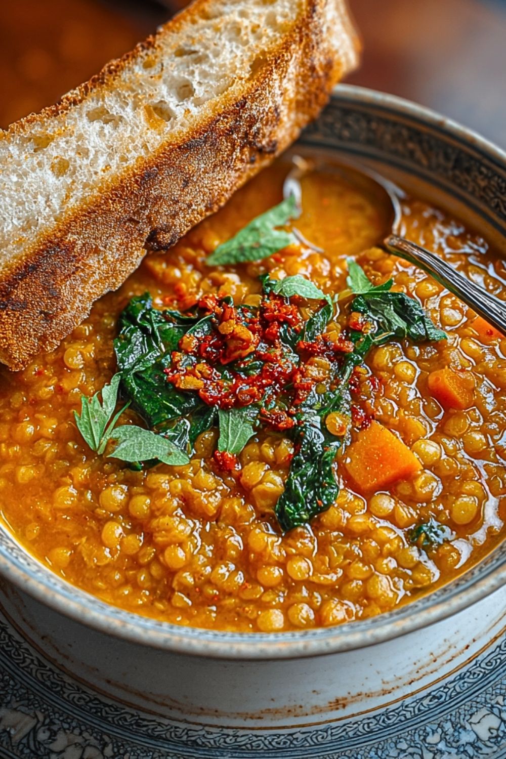 Keywords: spicy lentil soup, vegan soup, healthy dinner, easy recipe, lentil stew