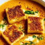 Ladle the hot soup into bowls and top with golden grilled paneer cubes, croutons, or pumpkin seeds. Finish with a sprinkle of fresh herbs.