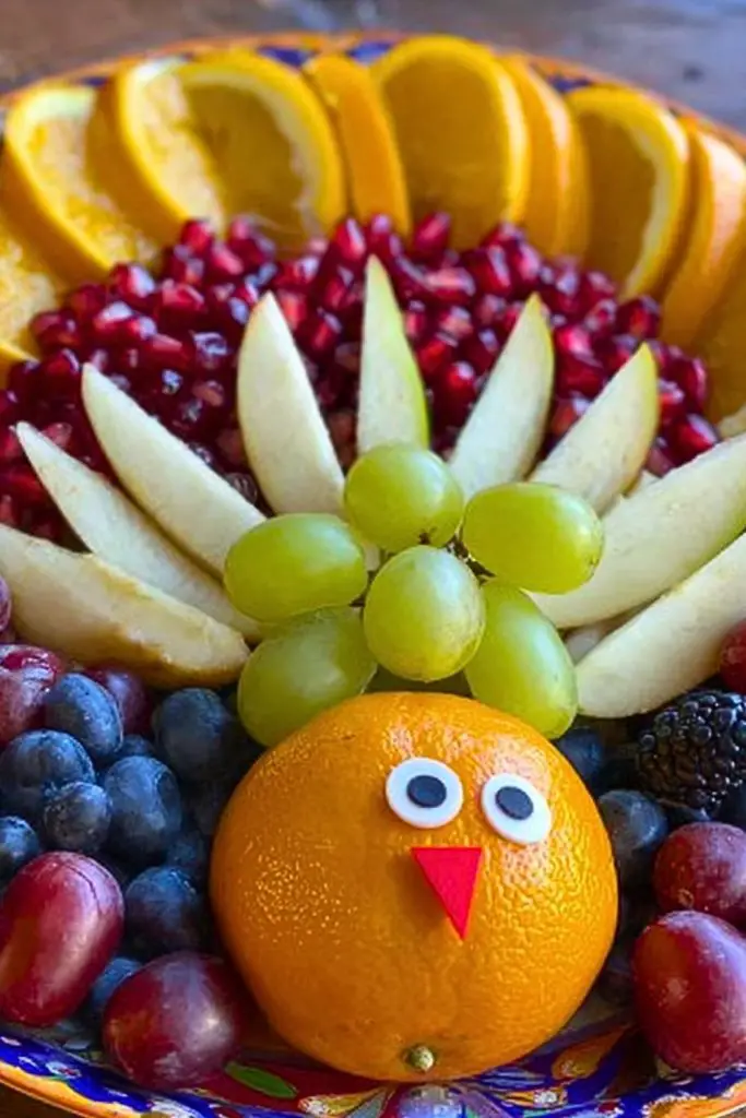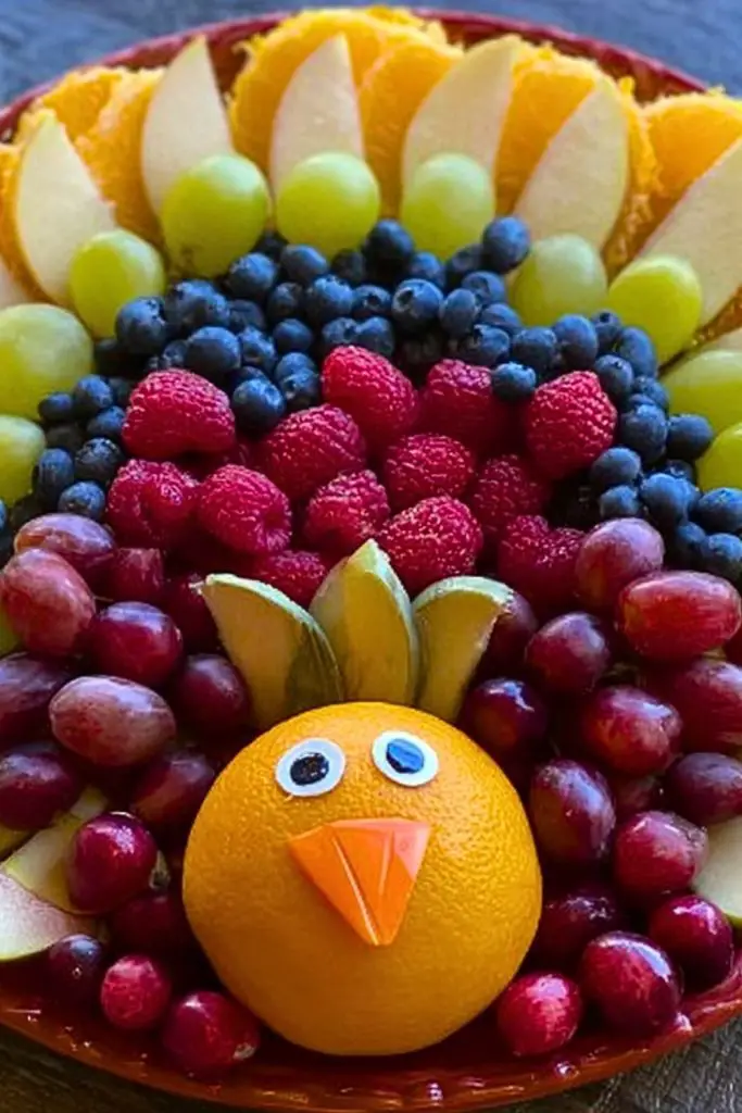 Keywords: Thanksgiving fruit tray, healthy snack, fun holiday appetizer, fruit platter, easy recipe
