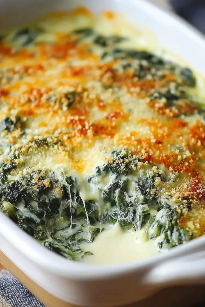 This spinach casserole works beautifully as a make-ahead dish. You can assemble it a day in advance and refrigerate it until ready to bake. If you’re reheating leftovers, a quick 10-15 minutes in a 350°F oven will restore its crispy top and creamy center. Feel free to swap out cheddar for Gruyère or mozzarella if you prefer a different cheese profile, and you can also mix in a bit of cream cheese for extra richness.