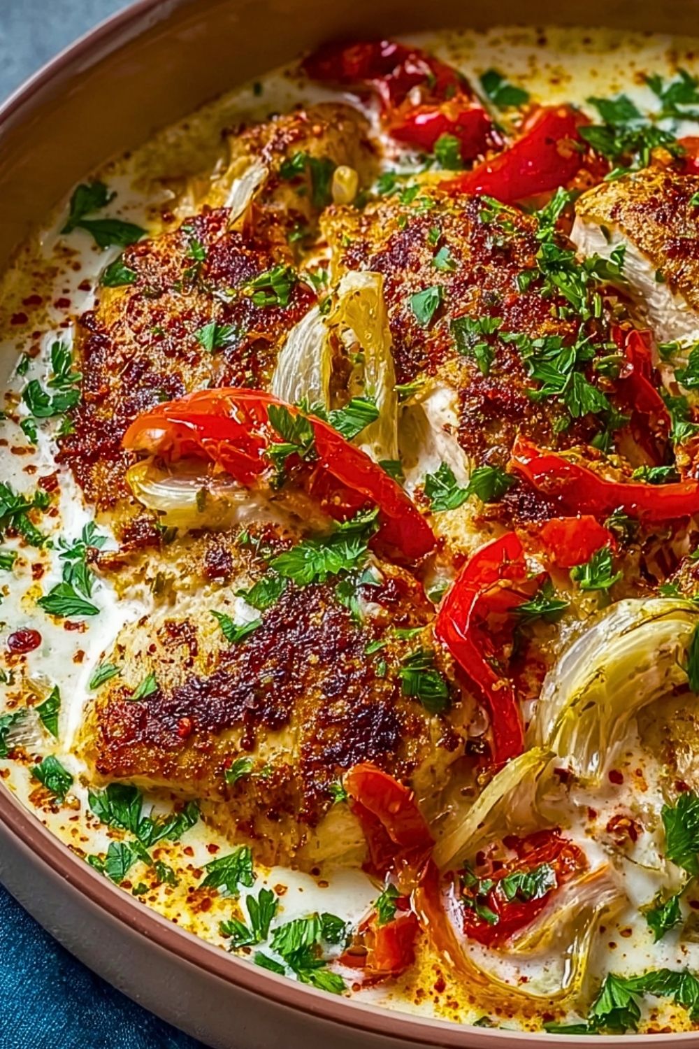There’s something about this Turkish Chicken with Creamy White Sauce that hits all the right notes. It’s comforting, bold in flavor, and feels like it came straight out of a restaurant kitchen — but it’s completely doable at home. I love how the spice-rubbed chicken develops a golden crust before being simmered in a velvety sauce packed with roasted peppers, sweet onions, and vibrant herbs. It’s one of those dishes that makes the entire kitchen smell amazing.