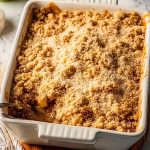 Place the baking dish in the preheated oven and bake for 45 to 50 minutes. The topping should be golden brown and the apple filling should be bubbling around the edges. If the top starts to brown too quickly, cover loosely with foil for the remaining bake time.