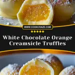 Bright, creamy, and bursting with citrus flavor, these White Chocolate Orange Creamsicle Truffles are the ultimate no-bake treat. With their velvety orange-infused ganache center coated in luscious white chocolate, they channel all the nostalgic joy of a creamsicle in elegant bite-sized form. Perfect for holiday trays, DIY gifts, or quick dessert ideas, this easy recipe transforms a few simple ingredients into a decadent treat that’s also gluten-free. Whether you’re after breakfast ideas, easy dinner party desserts, or just delicious food ideas, these creamy citrus truffles fit the bill beautifully.