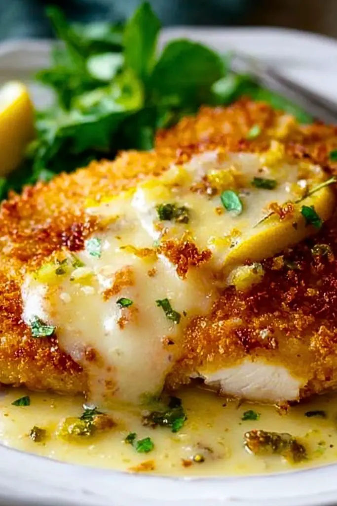 • Crispy outside, juicy inside: The panko-Parmesan coating gives the chicken a golden crust that holds up under the creamy lemon sauce.