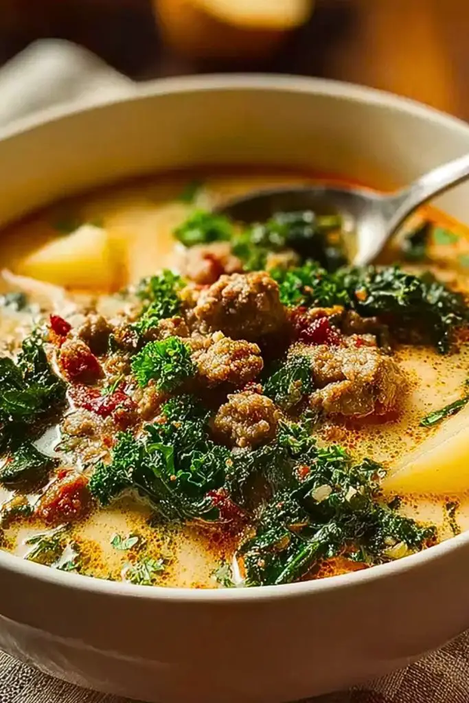 Start by browning your sausage thoroughly—it’s the foundation of flavor in this dish. Drain excess fat if needed, but leave just enough to sauté the onions and garlic. For potatoes, go with Russet or Yukon Gold for the creamiest texture. Add kale toward the end of cooking so it retains some structure and color. And when it comes to the cream, stir it in gently at a low simmer to avoid curdling. Taste your soup before serving and adjust the seasoning with salt, pepper, or a pinch of red pepper flakes for a subtle kick.
