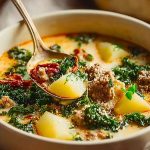 Warm, creamy, and brimming with rustic flavors, Zuppa Toscana is the kind of soup that instantly brings comfort with every spoonful. Originating from Tuscany, this Italian classic has won hearts globally—especially when served with crusty bread on a cool evening. The richness of sausage, the heartiness of potatoes, and the fresh bite of kale combine beautifully in a velvety broth that’s both indulgent and nourishing.